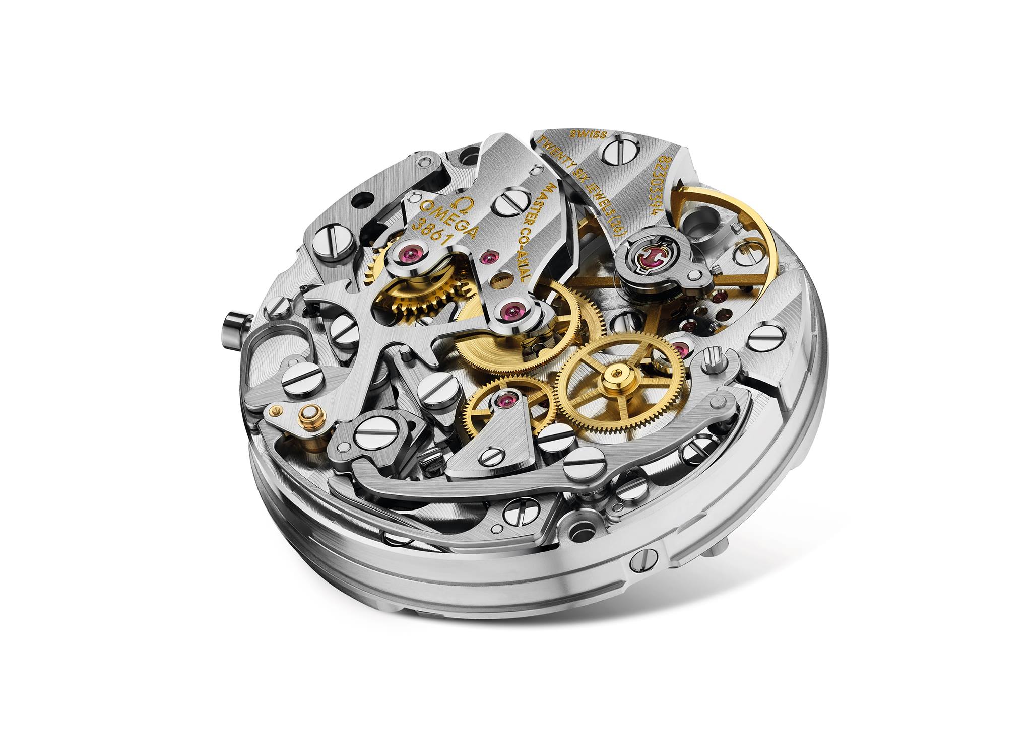 El nuevo movimiento Omega Co-Axial Master Calibre 3861 da el siguiente paso evolutivo para el famoso movimiento Moonwatch. El Speedmaster Moonwatch, ahora diseñado con tecnología Co-Axial, una función de paro de segundo y la innovación antimagnética superior de OMEGA, ahora puede alcanzar el estándar de cronómetro maestro, que garantiza el más alto estándar de precisión, rendimiento de cronometría y resistencia magnética de la industria.
