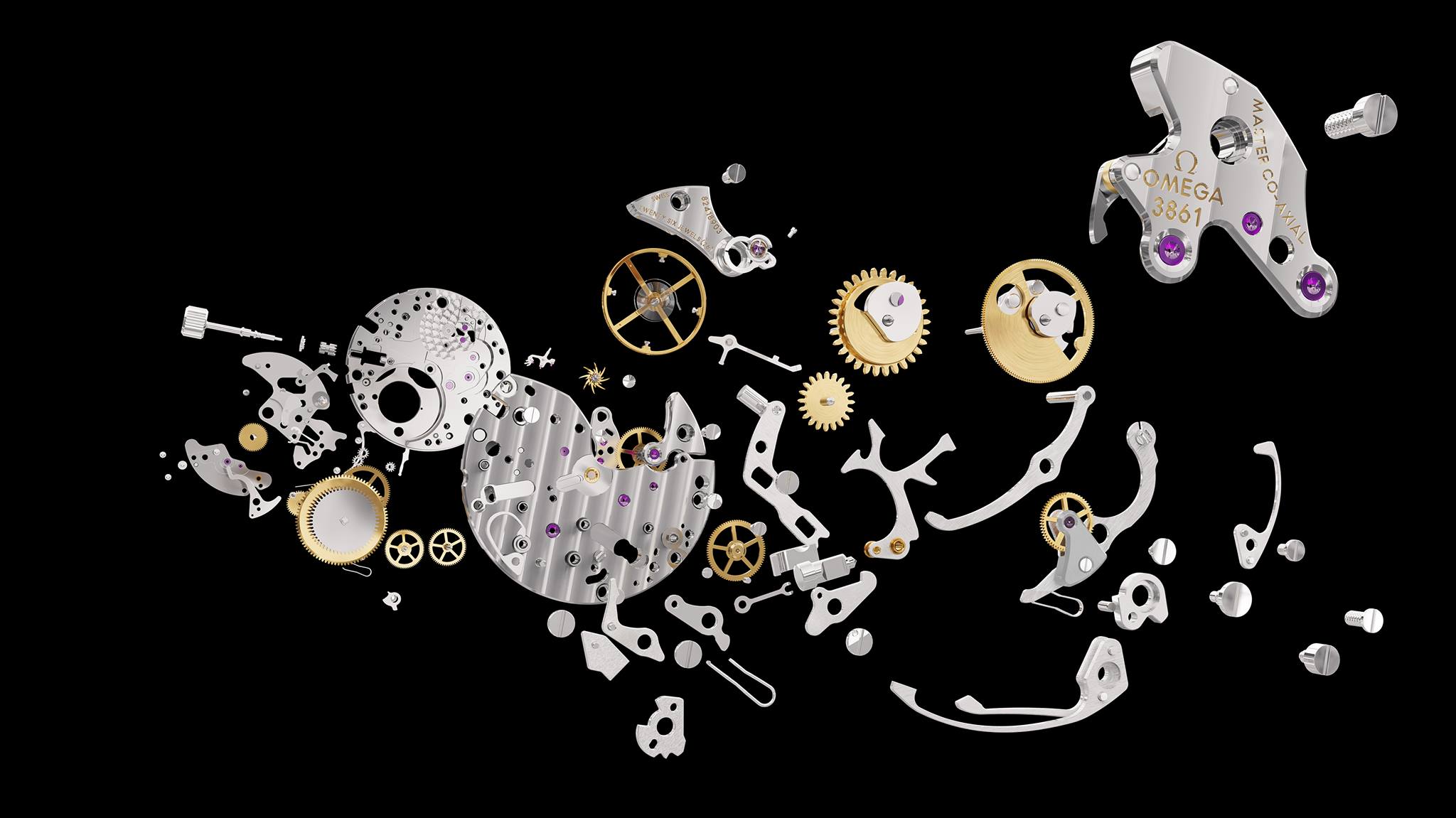 Eso significaba encontrar una manera de adaptar todos los nuevos componentes de vanguardia a un espacio más adecuado para un movimiento más antiguo. Un desafío sin duda, ya que el 3861 tiene 240 componentes en comparación con los 234 de 1861, pero los ingenieros de Omega lograron mejorar la reserva de energía, el rendimiento preciso y la resistencia magnética.