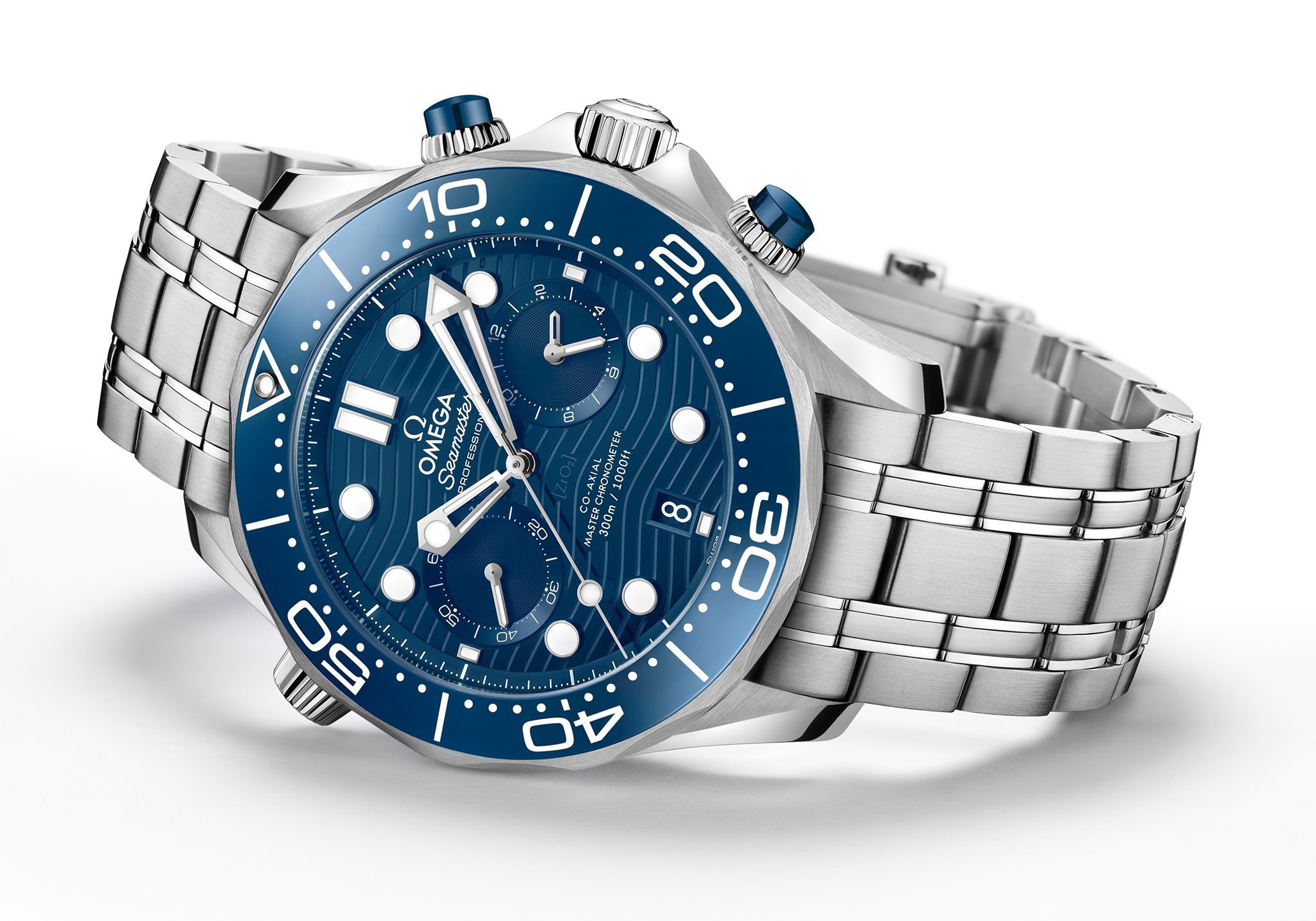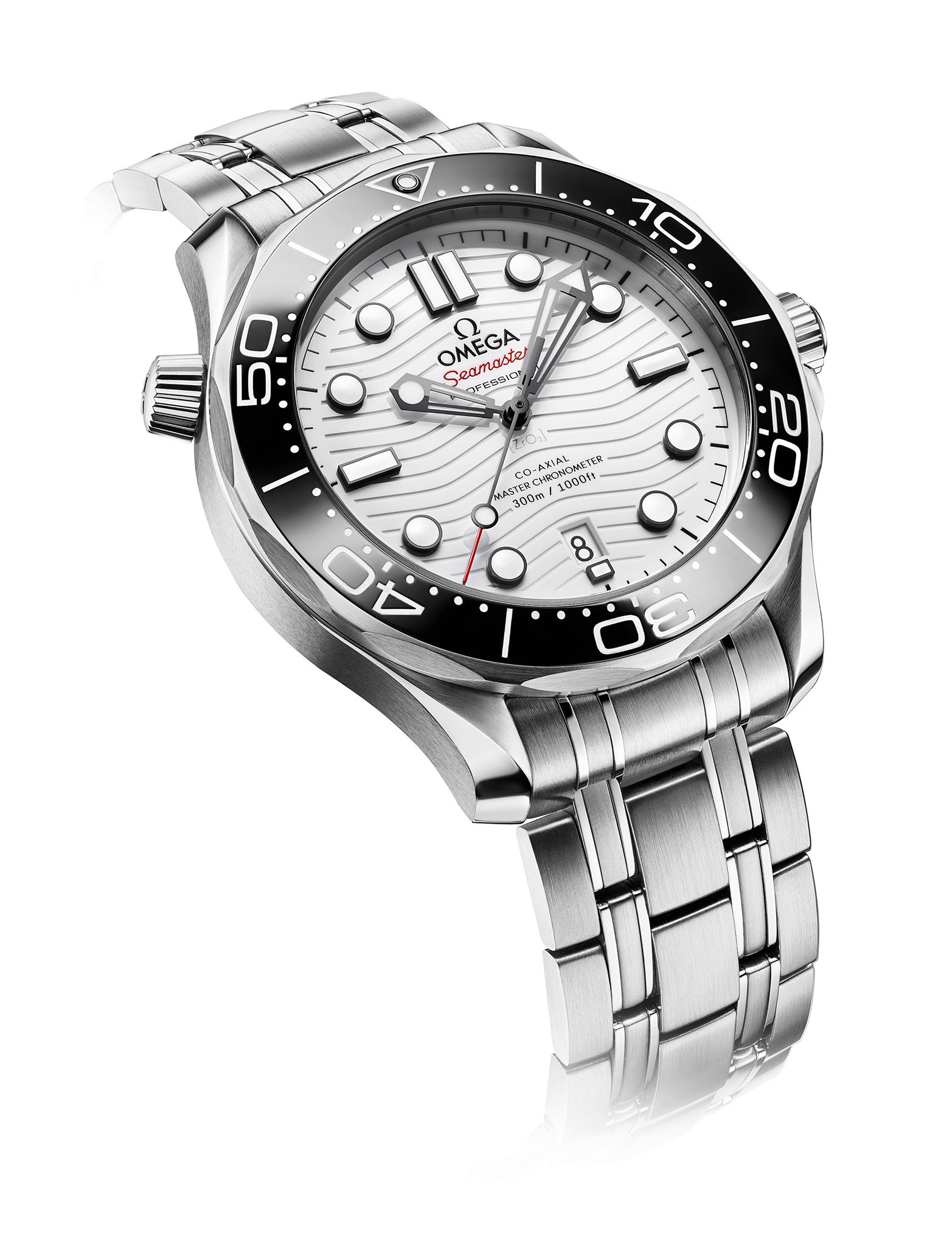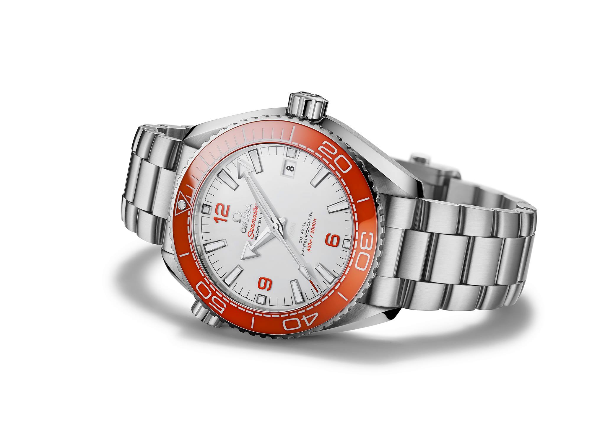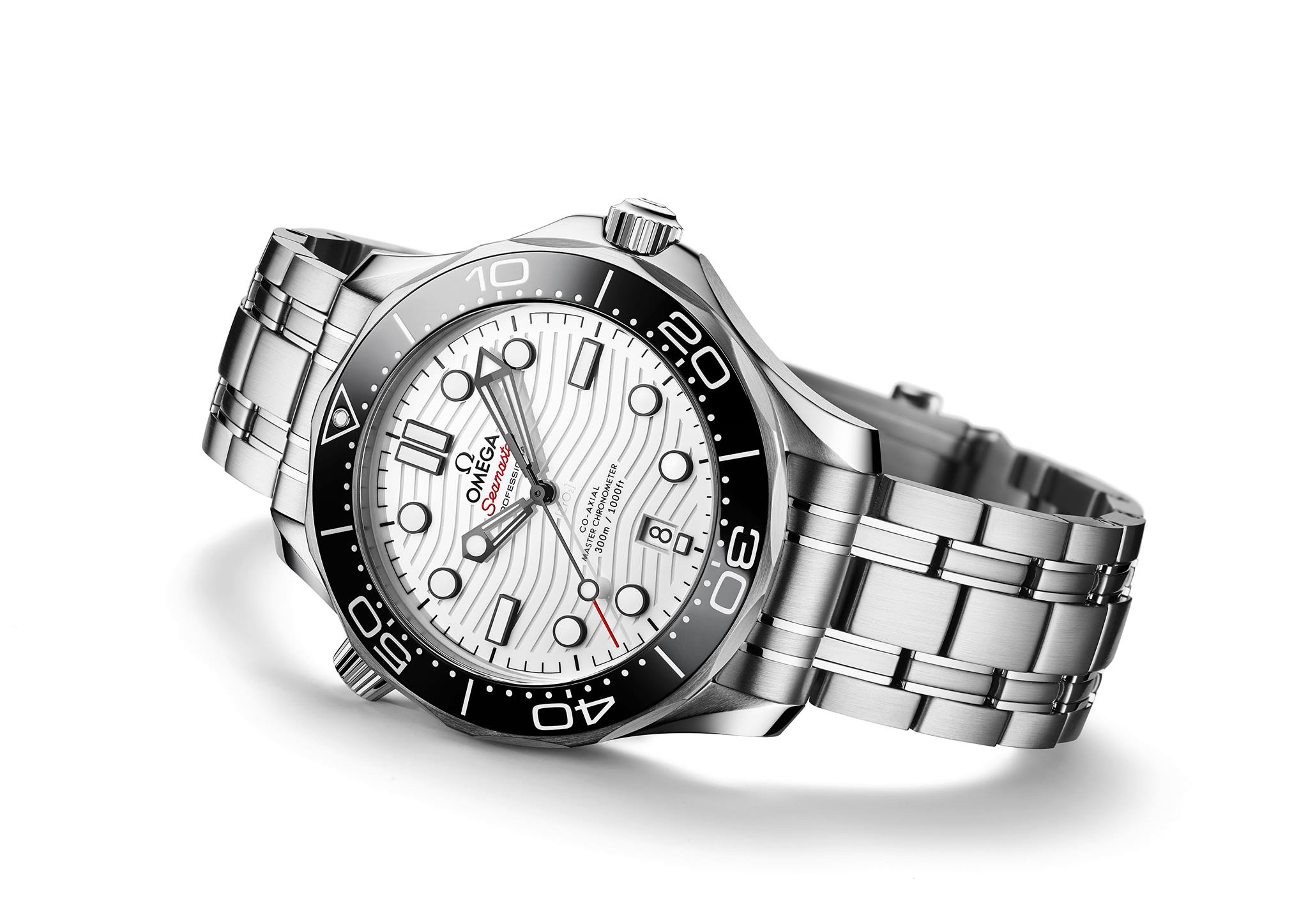 La pieza se ofrece en caja de 43,50 mm en acero inoxidable. Este es el mismo material utilizado para el brazalete completamente cepillado que se integra perfectamente con el estuche. También está el plegador y pulsador con extensible patentado de Omega con una extensión de buzo adicional.