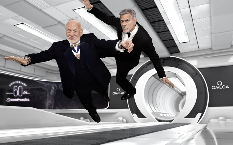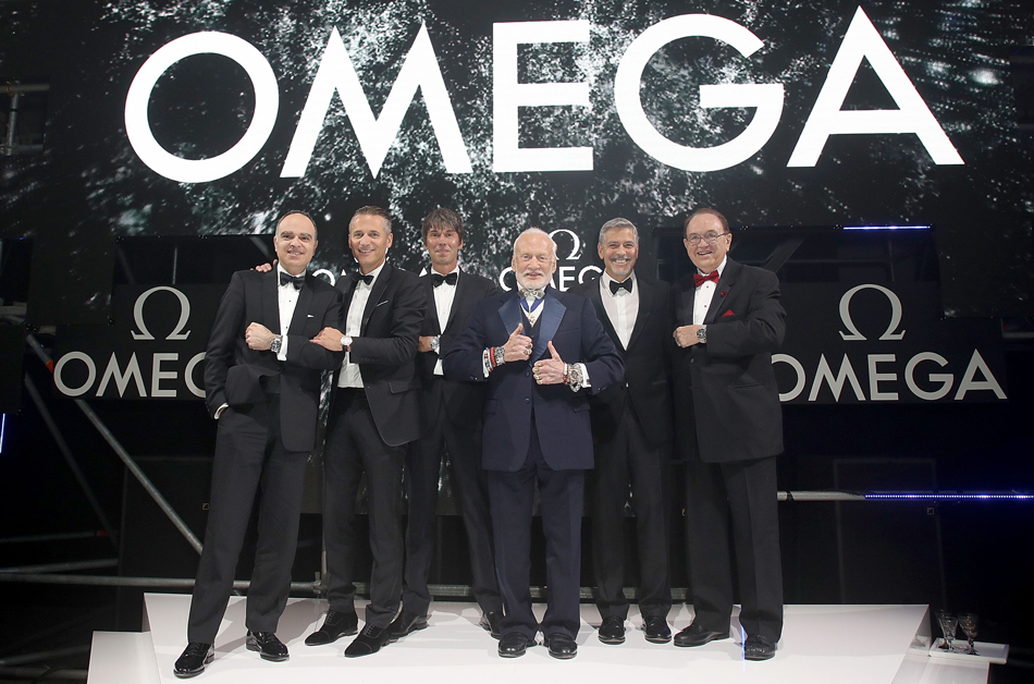 La noche del 26 de abril Londres se vistió de gala para presenciar la celebración de los 60 de Speedmaster, y George Clooney acompañó al astronauta, ambos disfrutaron de la participación de Brian Cox quien, como host, recibió al CEO de Raynald Aeschlimann, Presidente y CEO de Omega.
