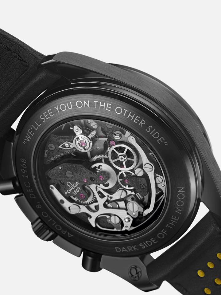 El lado oscuro de la Luna es será símbolo de misticismo y admiración por parte del hombre. Y este año Omega se liga a él gracias al aniversario de la misión aeroespacial Apollo VIII. 50 años después de la misión Apolo 8, la primera que orbitó alrededor de la Luna, Omega lanza este reloj que, diferencia de los anteriores modelos Dark Side, se trata de una versión decorada especialmente del famoso movimiento Moonwatch de Omega.