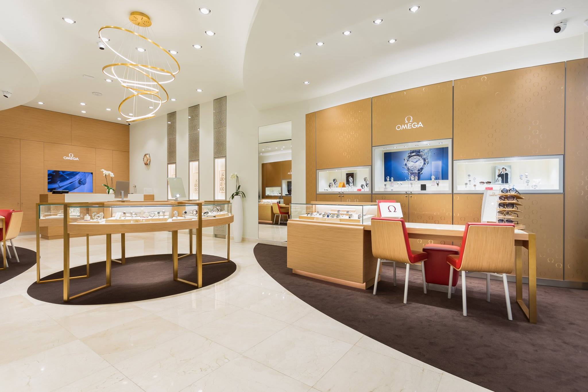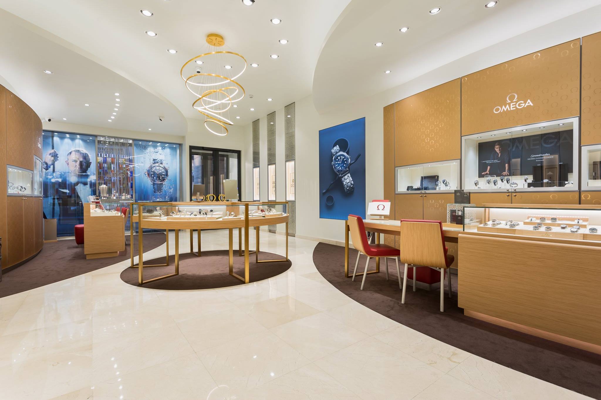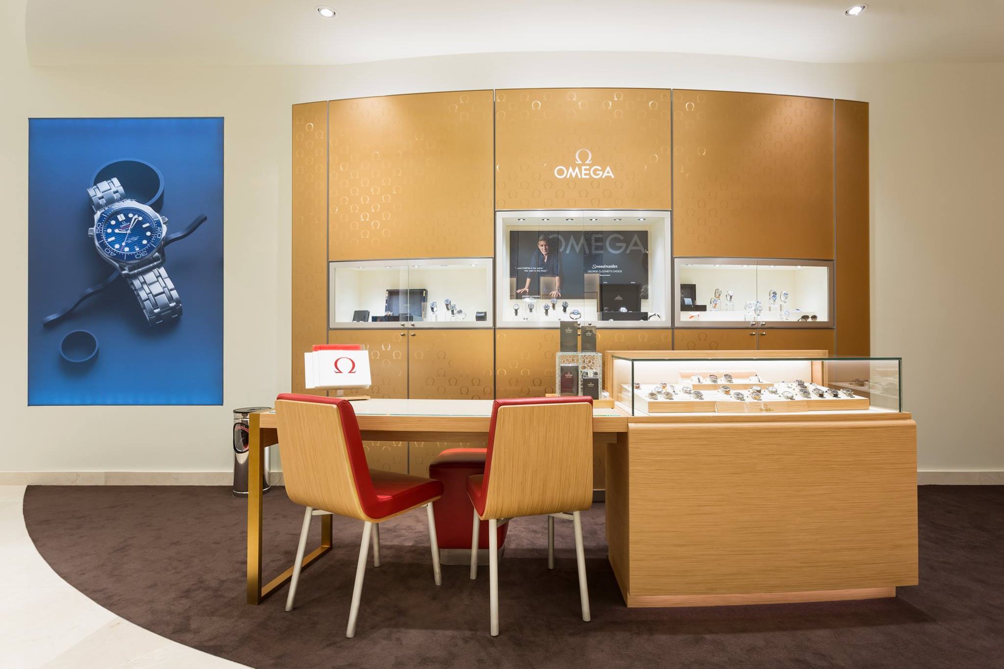 Omega también ofrece una amplia selección de joyería fina, accesorios, marroquinería, gafas de sol y fragancias. El espacio cuenta con 140m2 distribuidos en dos pisos, en los cuales también se cuentan dos salas especiales para ofrecer un servicio personalizado.