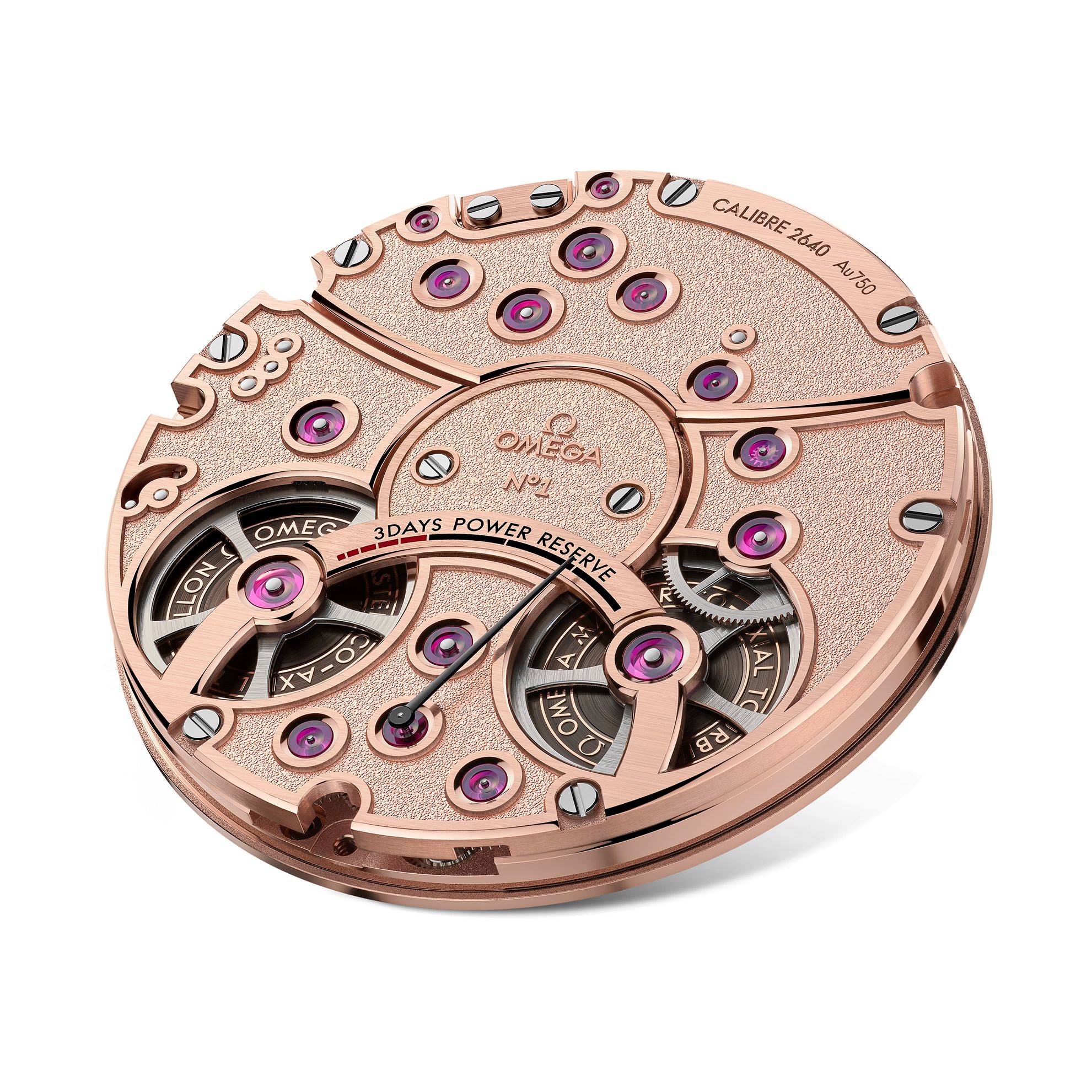 - Calibre: Omega 2640, platina y puentes de oro Sedna y doble barrilete™