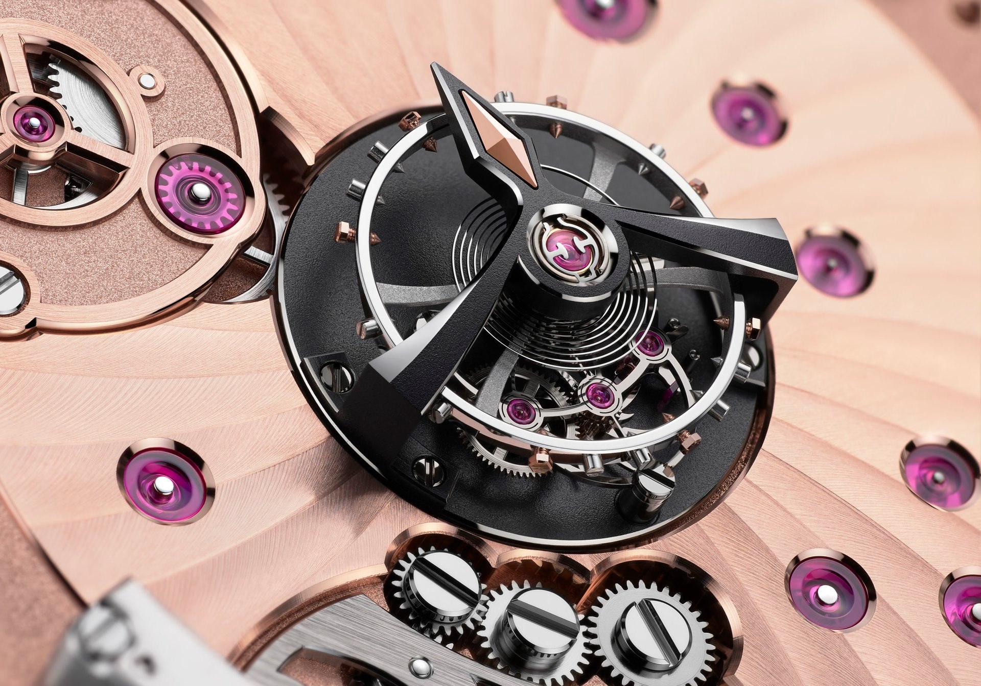 Este nuevo capítulo propone una jaula de tourbillon capaz de resistir 15 mil Gauss. Todo ello fue posible gracias al cambio del uso de los materiales para la jaula que ingresa en su interior al órgano regulador y al escape. Se emplearon biseles de titanio ceramizado color negro y pulidos a mano. Más allá de repensar la construcción del calibre para posicionar al tourbillon de manera central.