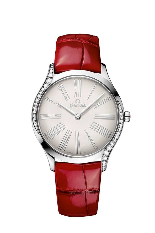 Si bien los modelos se presentan en correas de cuero o caucho, esta encantadora colección ahora está disponible en una gama de colores de carátula, que incluyen blanco, azul PVD lacado, plateado opalino, rojo o marrón lacado, todo ello con la apariencia atemporal de los números romanos. Cada modelo también viene con la garantía completa de 5 años de Omega.