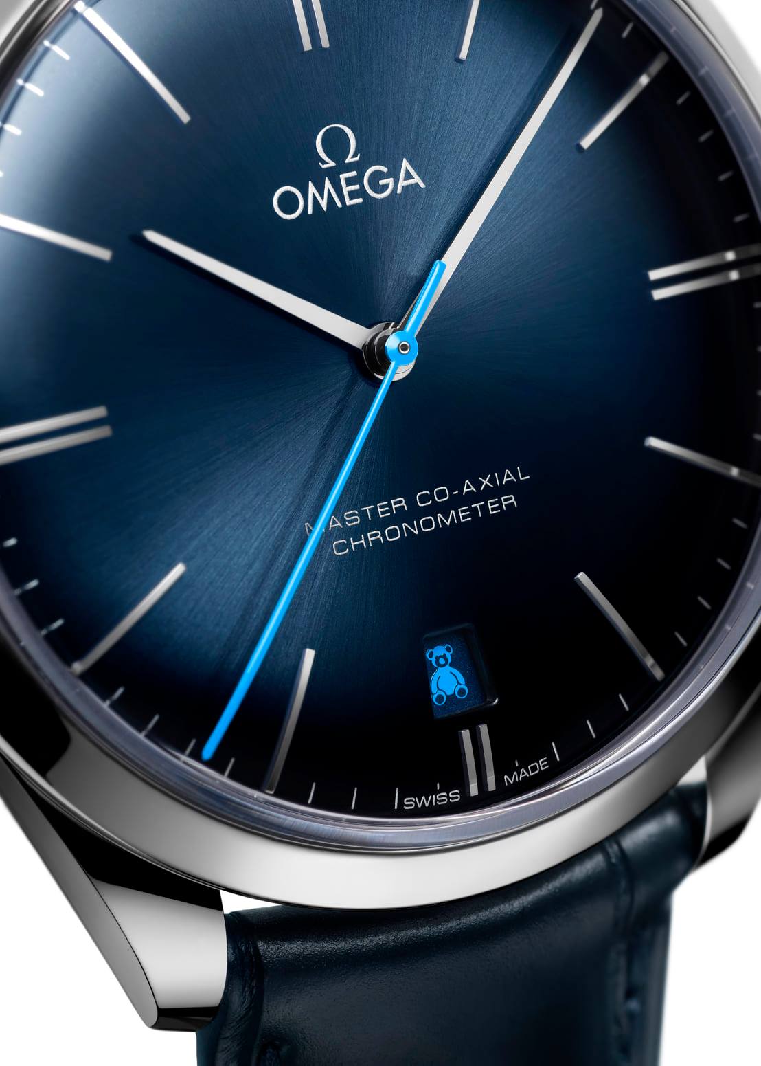 Como referencia lúdica a los peluches que se les dan a los niños que se someten a una cirugía ocular, un oso de peluche Orbis reemplaza el número 8 en el indicador de fecha. Una mascota encantadora sombreada del mismo azul claro que el segundero.
