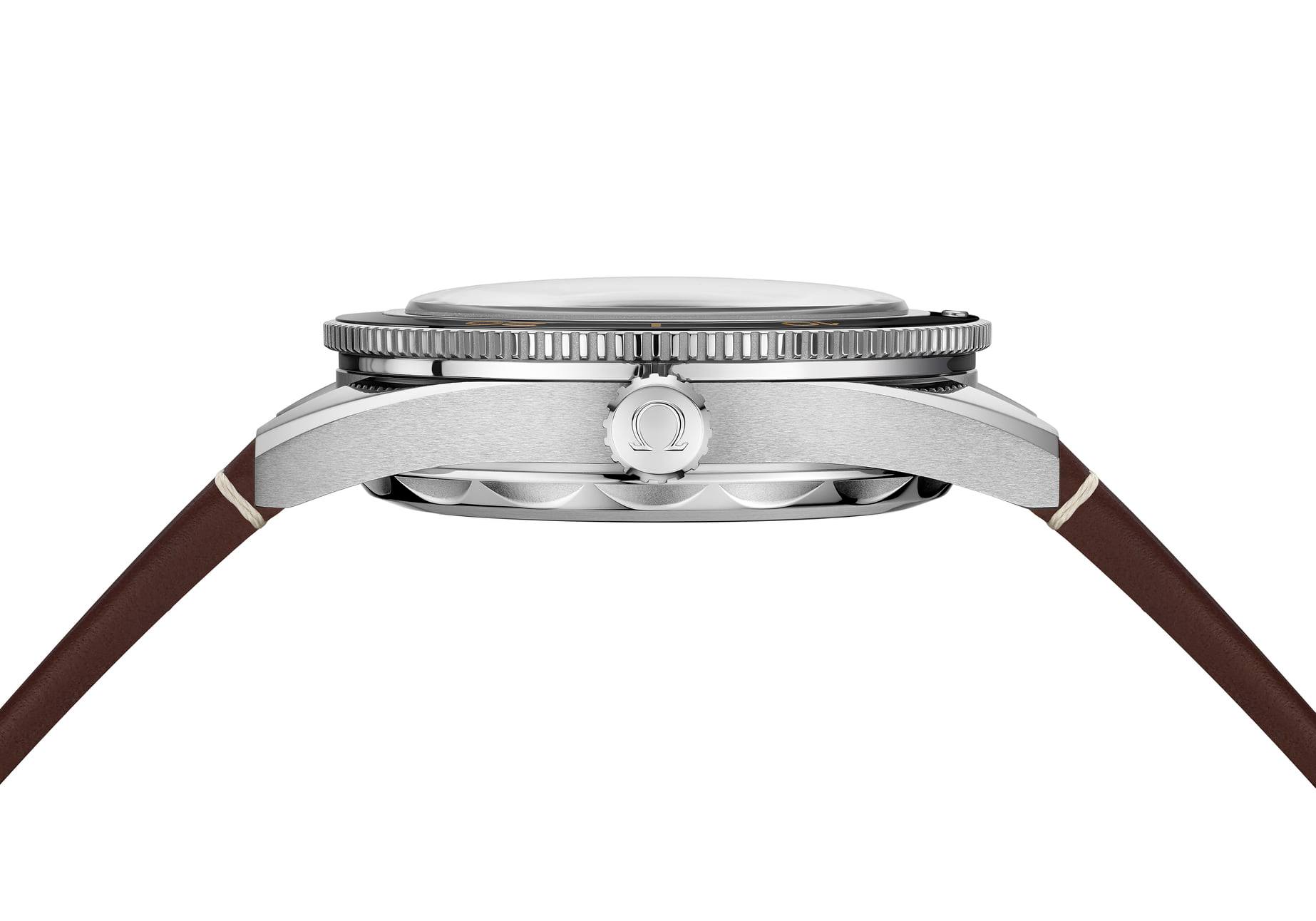 - Caja: 41 x 13.85 mm de acero inoxidable u Omega Bronze Gold (Au375) con acabados pulido y cepillado; corona a juego; bisel unidireccional de aluminio anodizado o cerámica (Bronze Gold), cristal de zafiro abombado con tratamiento anti-reflejos y fondo atornillado con cristal de zafiro