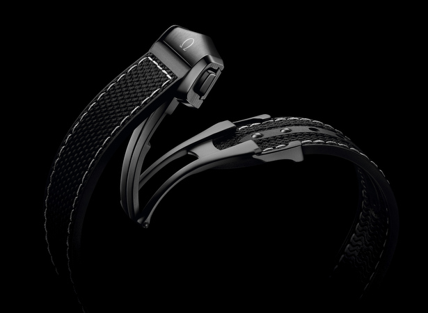 9.- Las pulseras de caucho negro tienen la apariencia de tejido. Llevan un pespunte de contraste y han sido tratadas con un revestimiento antibacteriano. La pulsera del modelo en oro Sedna™ es de piel impermeable y el cierre desplegable es de titanio ceramizado.