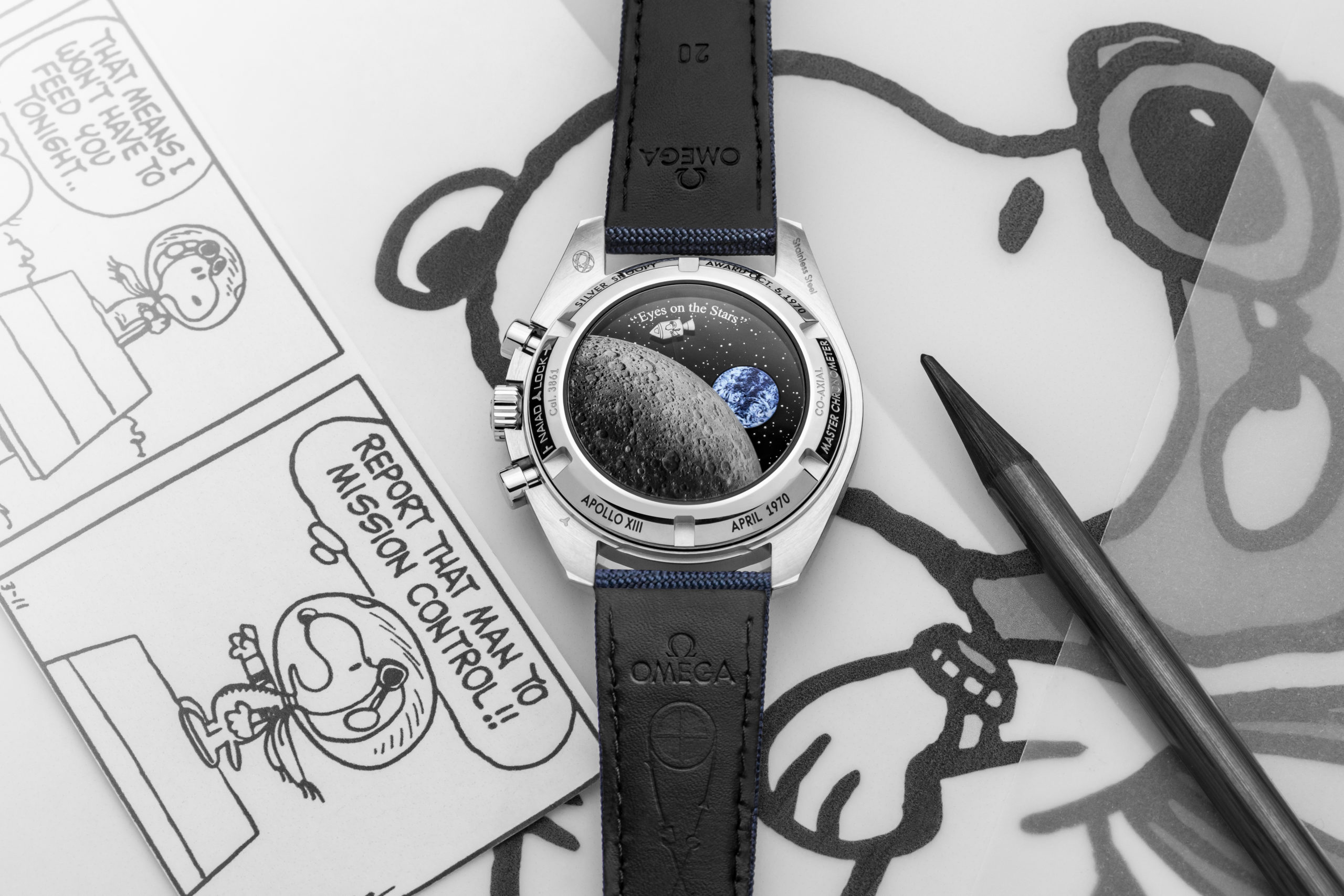 Snoopy es la mascota oficial de la NASA debido a su capacidad de mantener la calma en momentos complicados. Omega lo recibió en el “fracaso más exitoso” de la historia de la industria aeroespacial. Snoopy, un perro de raza Beagle, se asoció por vez primera en Apollo X, debido a que el módulo de comando se llamaba “Charlie Brown” y el Módulo de Excursión Lunar, “Snoopy”.