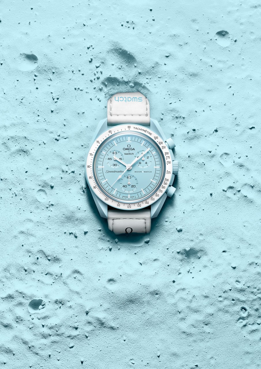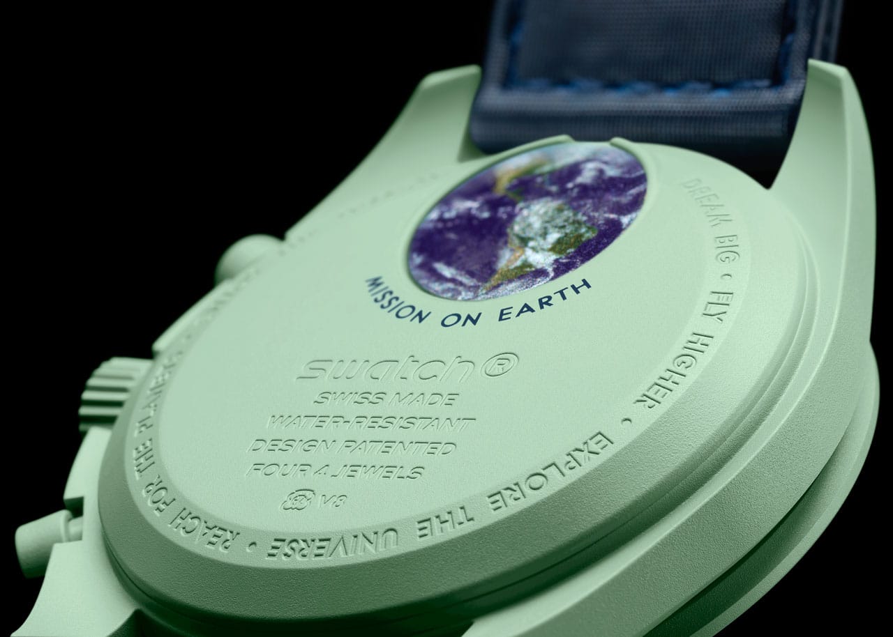 La nueva colección, de colores poco comunes, pretende dar un giro lúdico al reloj profesional de Omega. Cada MoonSwatch incorpora grabados inspiradores, su propia declaración de intenciones y dos logotipos OMEGA X SWATCH, uno en la carátula y otro en la corona.