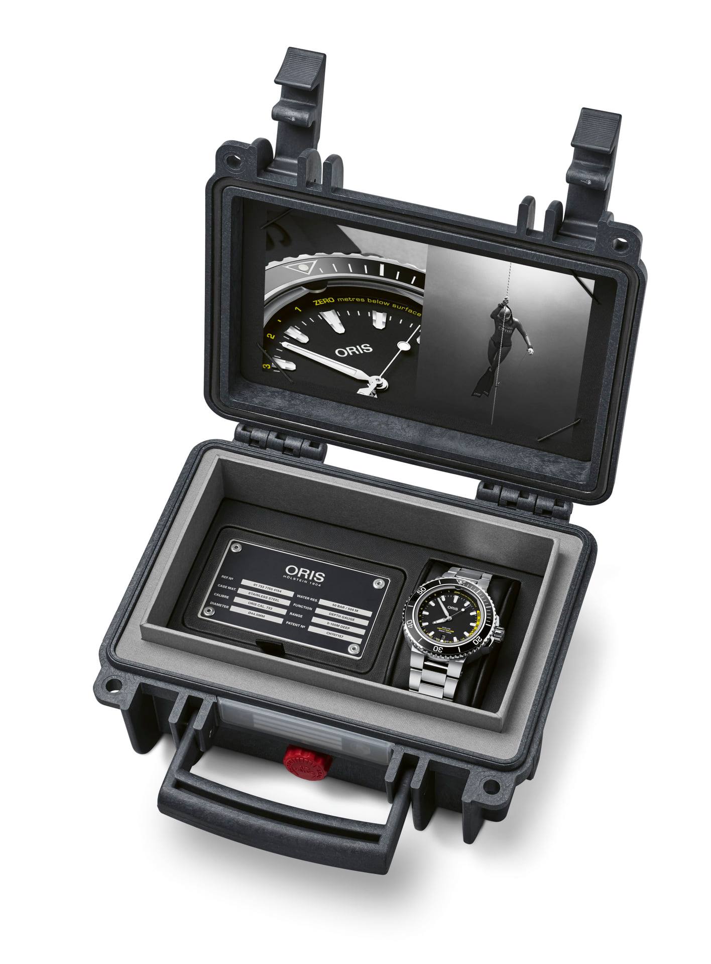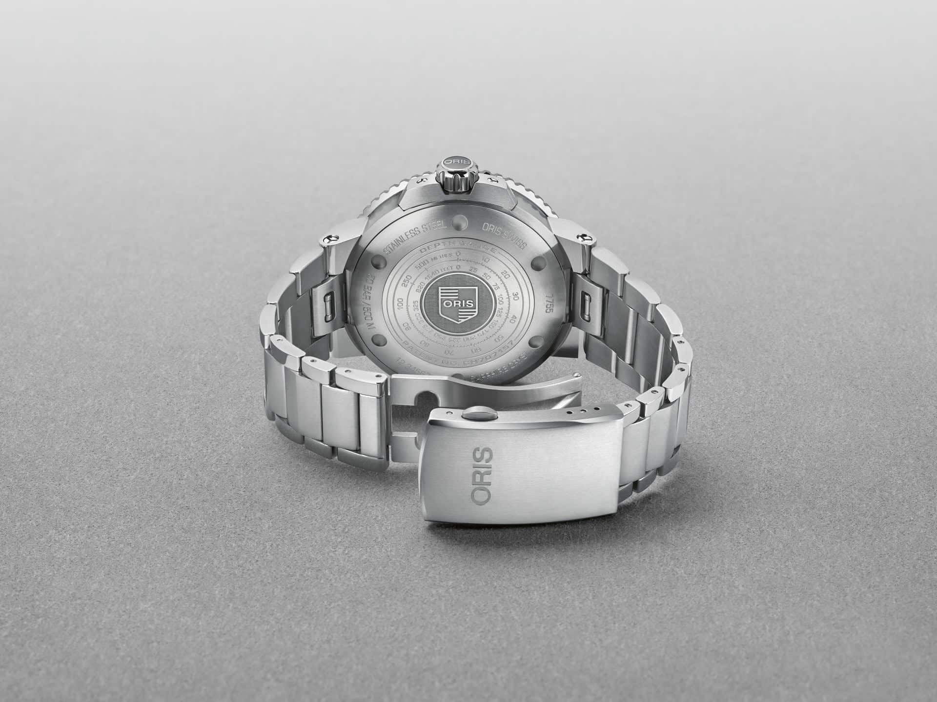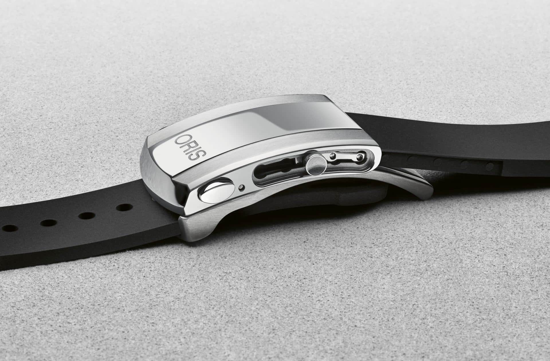 Mecánica, al interior porta el calibre Oris 733, mecánico automático base SW200-1 con información para las horas, minutos, segundos y fechador. Ofrece 38 horas de reserva de marcha a 4 Hz. Finalmente, otro ajuste es la inclusión del sistema Quick Strap Change, que permite el intercambio de correa a brazalete sin necesidad de herramientas.