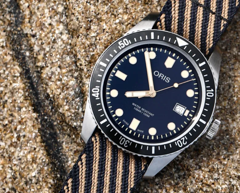 Este tipo de material es versátil, pues estabiliza los rayos UV y está certificado para sustancias nocivas según el internacional Oeko-Tex Standard 100. Además, puede ser reutilizado varias veces sin perder sus características básicas, ahorrando aproximadamente el 50 por ciento de la energía requerida para producir nuevos PET. Del mismo modo, el el proceso de teñido, ahorra agua y consumo de energía. Oris se enorgullece de ser pionero en el uso de este material innovador en la relojería de lujo
