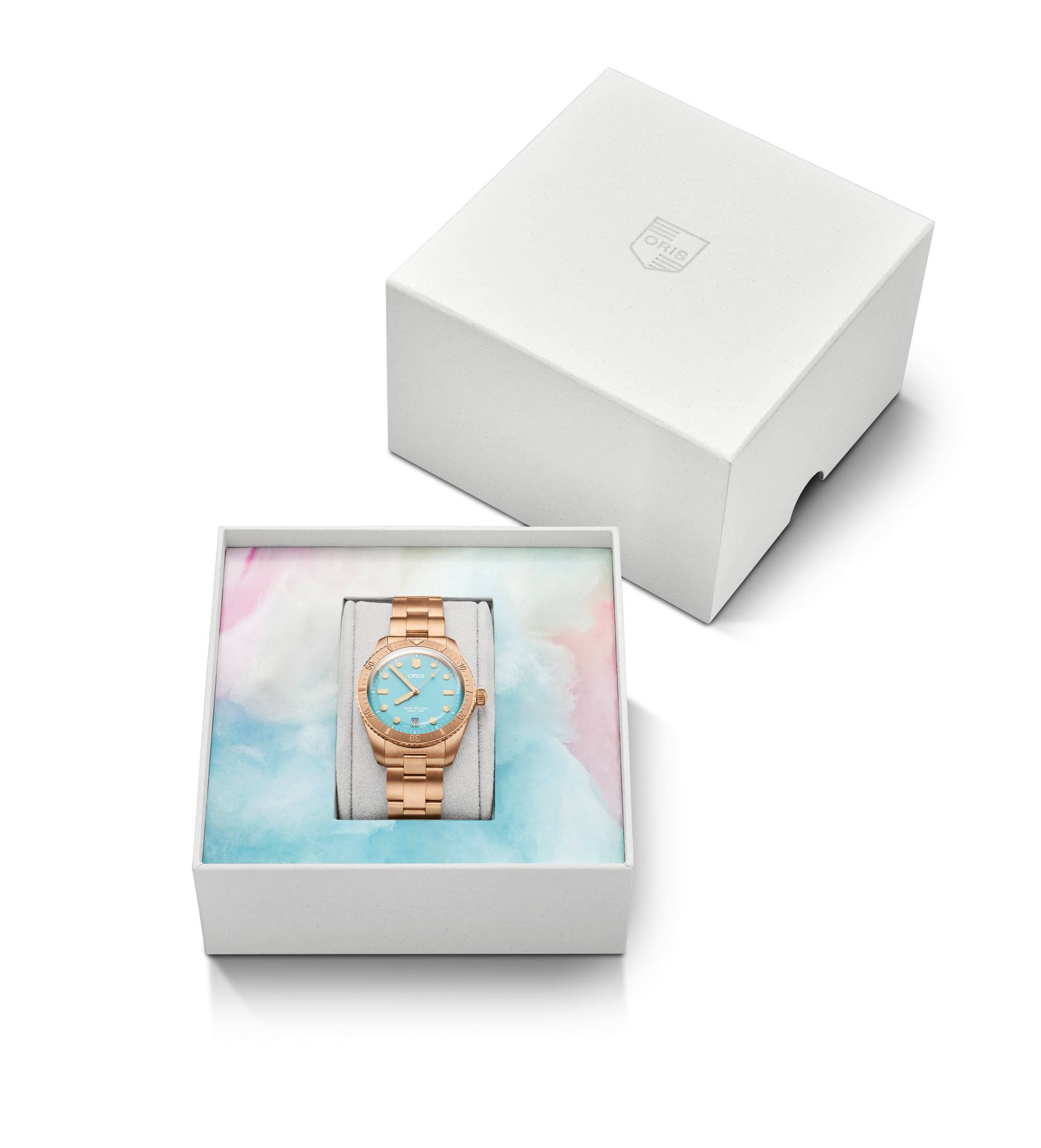 Oris Divers Sixty-Five Cotton Candy, a detalle