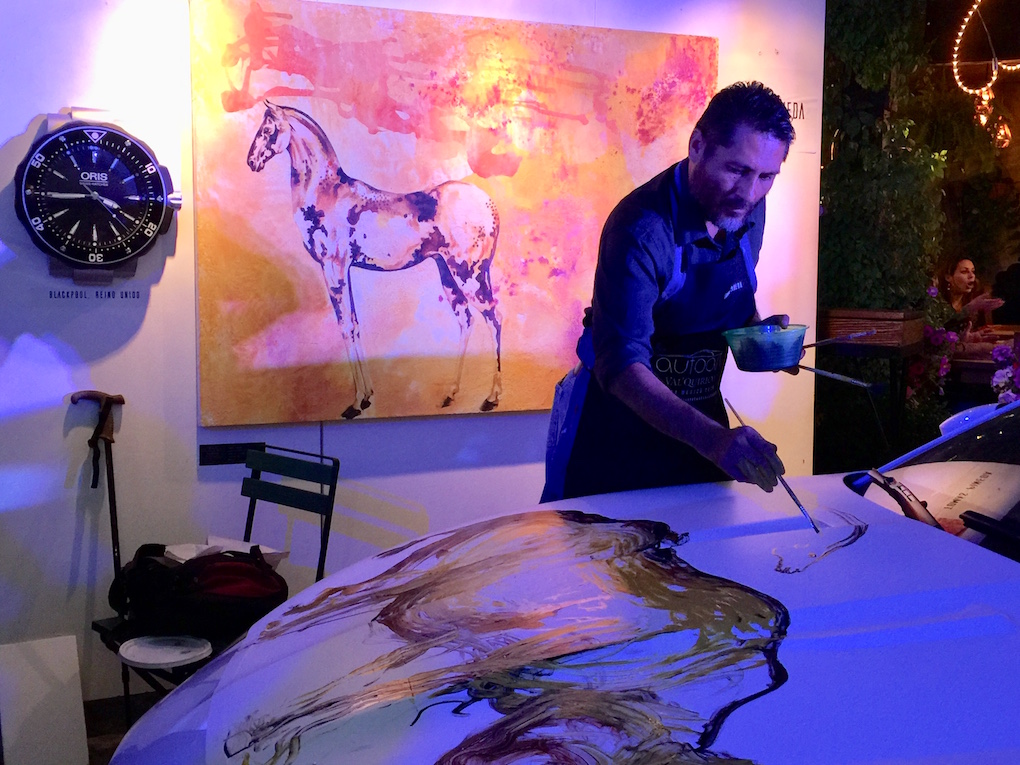 Durante más de una hora y media pudimos ser testigos de la pasión con la que 10 diferentes artistas latinoamericanos plasmaban sus obras en 10 marcas de automóviles de lujo como: Ferrari, Jaguar, BMW, Volvo, Acura, Tesla, entre otros.