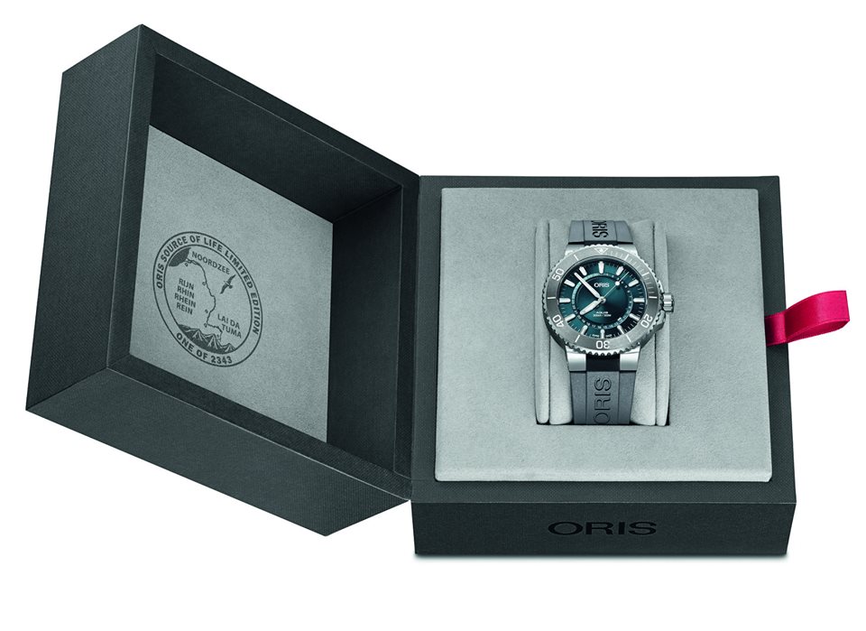 Oris Source of Life Limited Edition retoma ese tema y reconoce también el papel que desempeña el agua en la alimentación, la sostenibilidad y la conexión vital. Se centra en el curso del río Rin, elegido porque transcurre cerca del pueblo de Hölstein, donde Oris permanece desde 1904, y por el Orisbach, un arroyo cercano del que la compañía toma su nombre, y del que se nutre.