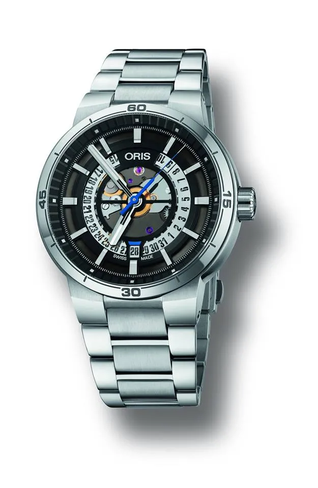 Un reloj de piloto impulsado por el último calibre de Oris desarrollado in-house, Calibre 114. El nuevo movimiento combina una reserva de marcha de 10 días, indicación de reserva de marcha no lineal patentada por Oris, indicación de fecha y, por primera vez, segundo huso horario 24 horas con indicación de medias horas. Ningún otro reloj mecánico de factura suiza combina estas funciones en un sólo reloj.