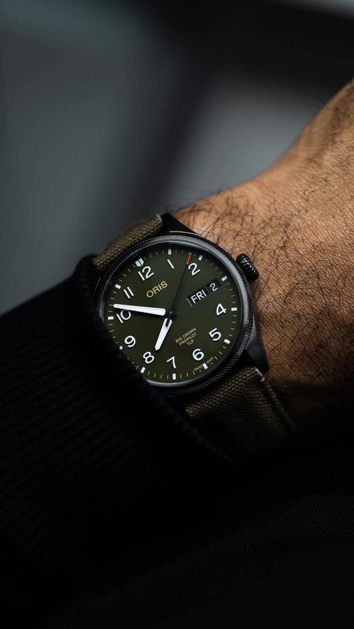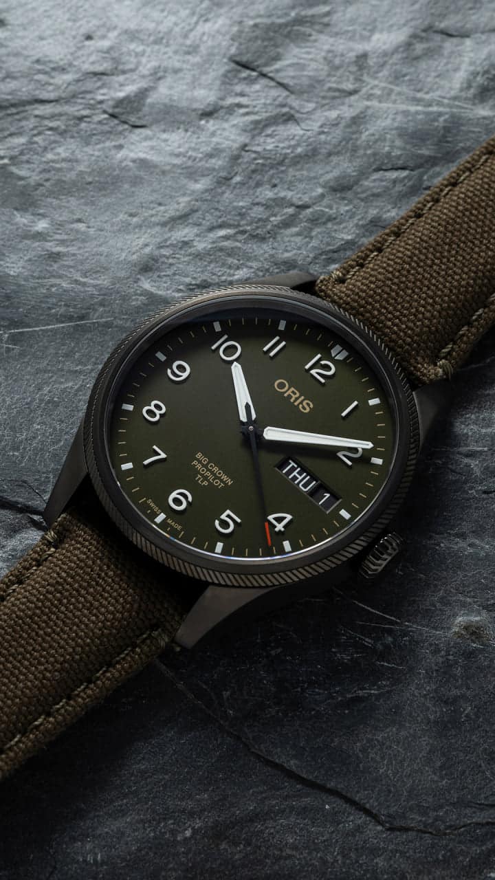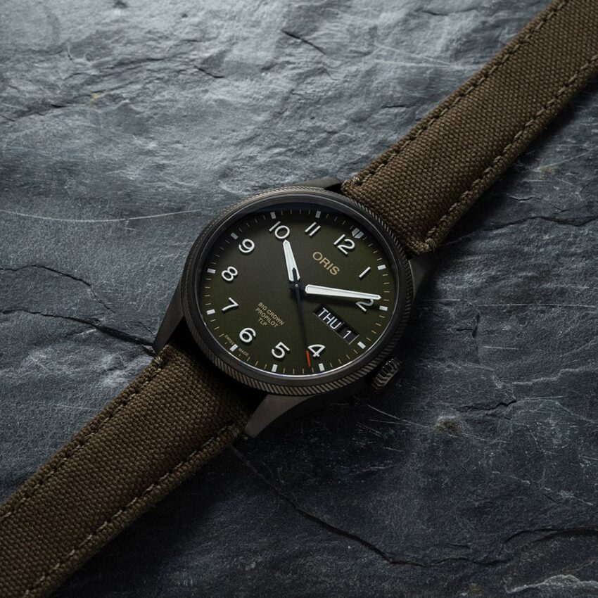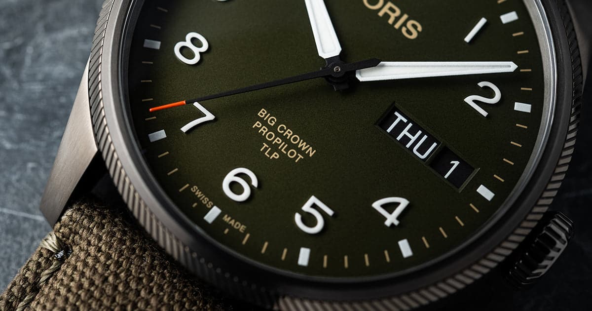 Para celebrar la nueva asociación, Oris presenta la Edición Limitada TLP a 750 ejemplares dentro de la línea ProPilot, fabricada en caja de acero inoxidable con recubrimiento PVD gris metalizado, y acompañado por una hermosa carátula verde militar inspirada en la indumentaria de los pilotos TLP.