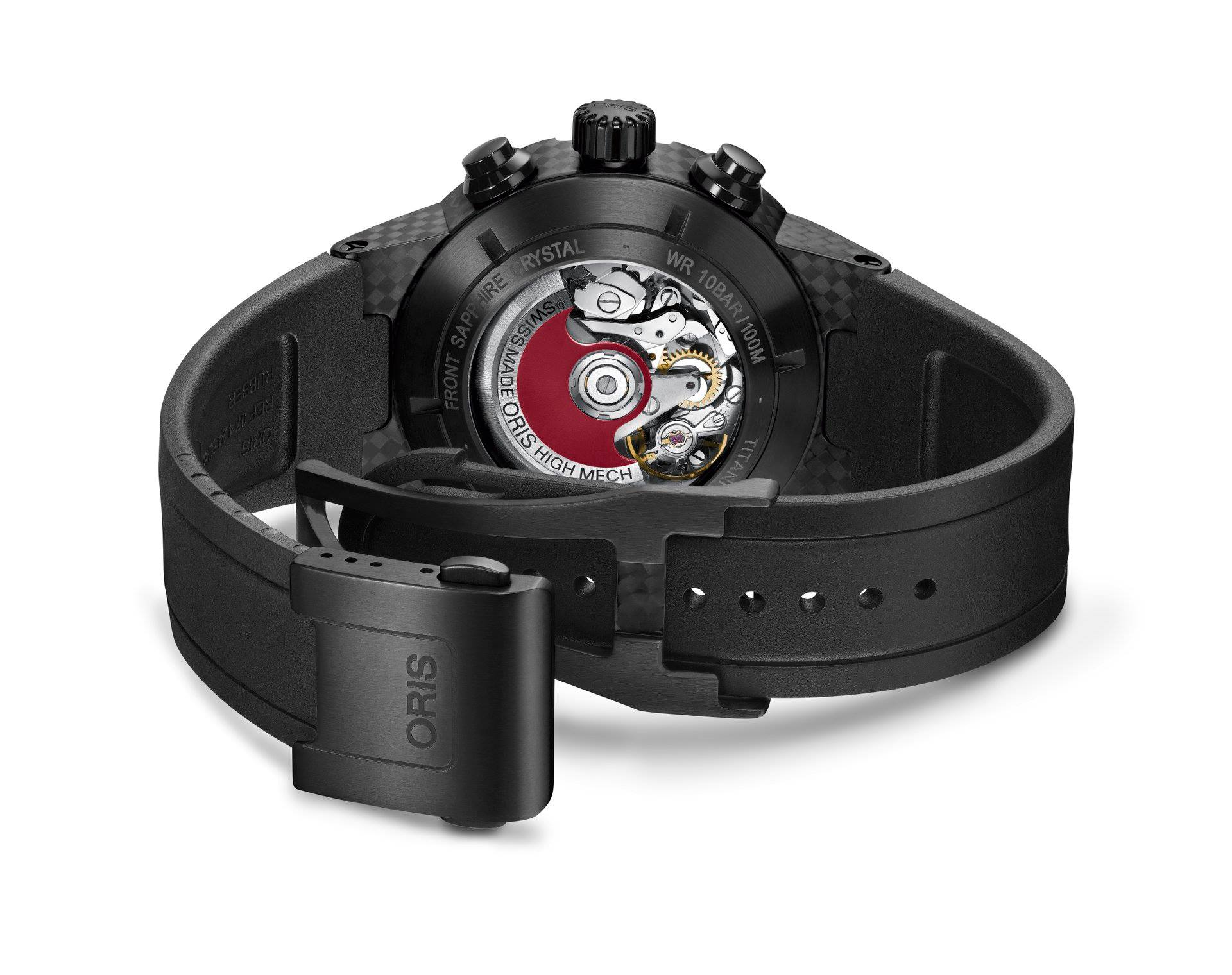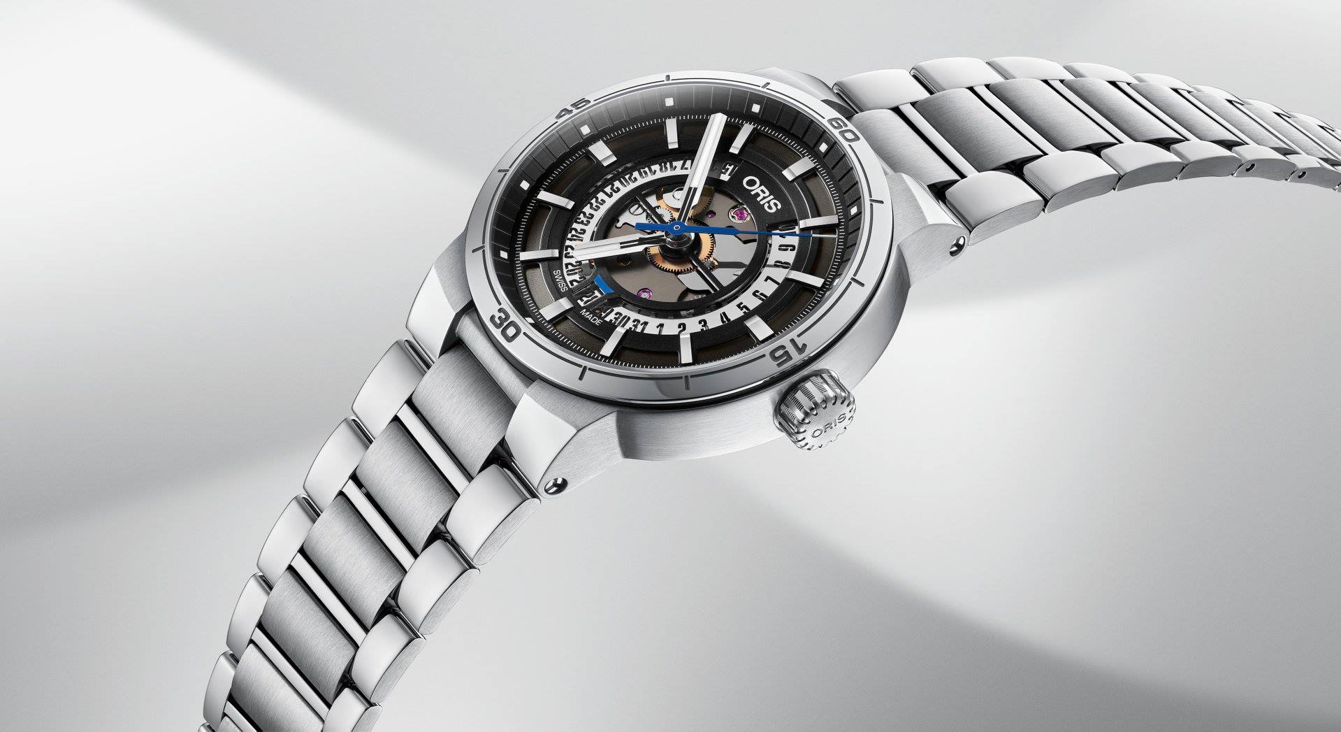 La refrencia destaca por su increíble chasís, desarrollado en acero inoxidable y con extensión de 42 mm de diámetro. La referencia busca poner en evidencia la mecánica del calibre, emulando la fuerza de admirar el motor dentro de un monoplaza. Abrazado al pulso mediante una correa de caucho vulcanizado o, si lo prefiere, brazalete de acero inoxidable a juego, la sujeción a la muñeca es inmejorable. Mientras que en estética destaca por su carátula acanalada, que deja entrever al calibre Oris Cal. 733, con base en el SW 200-1 (Sellita).