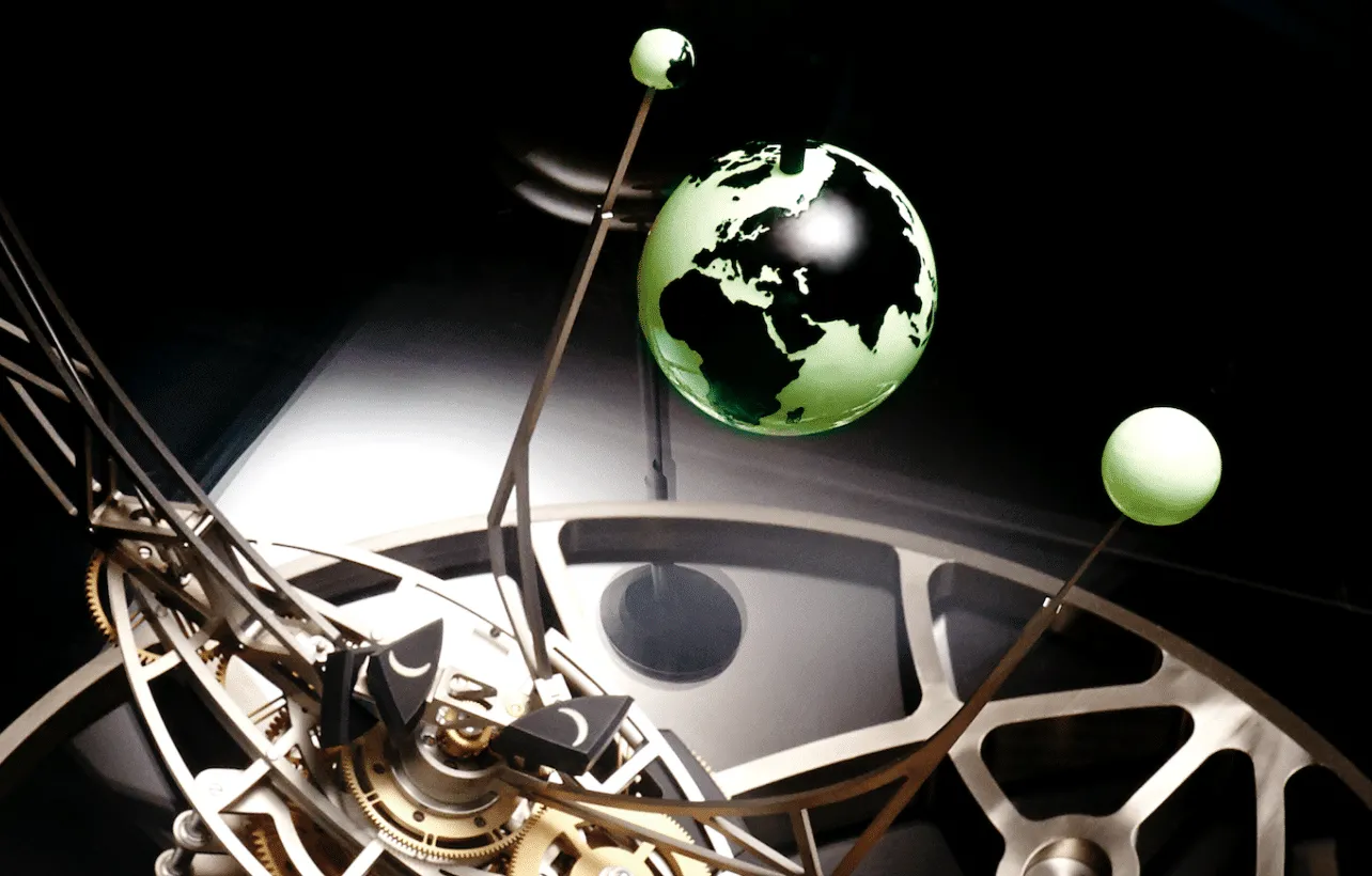 La firma ha desarrollado un ingenioso sistema patentado para reproducir el movimiento retrógrado de Júpiter con realismo, donde también se representan las estrellas sobre la bóveda. Cuenta con la indicaciones de un calendario perpetuo y reserva de marcha de 40 horas.