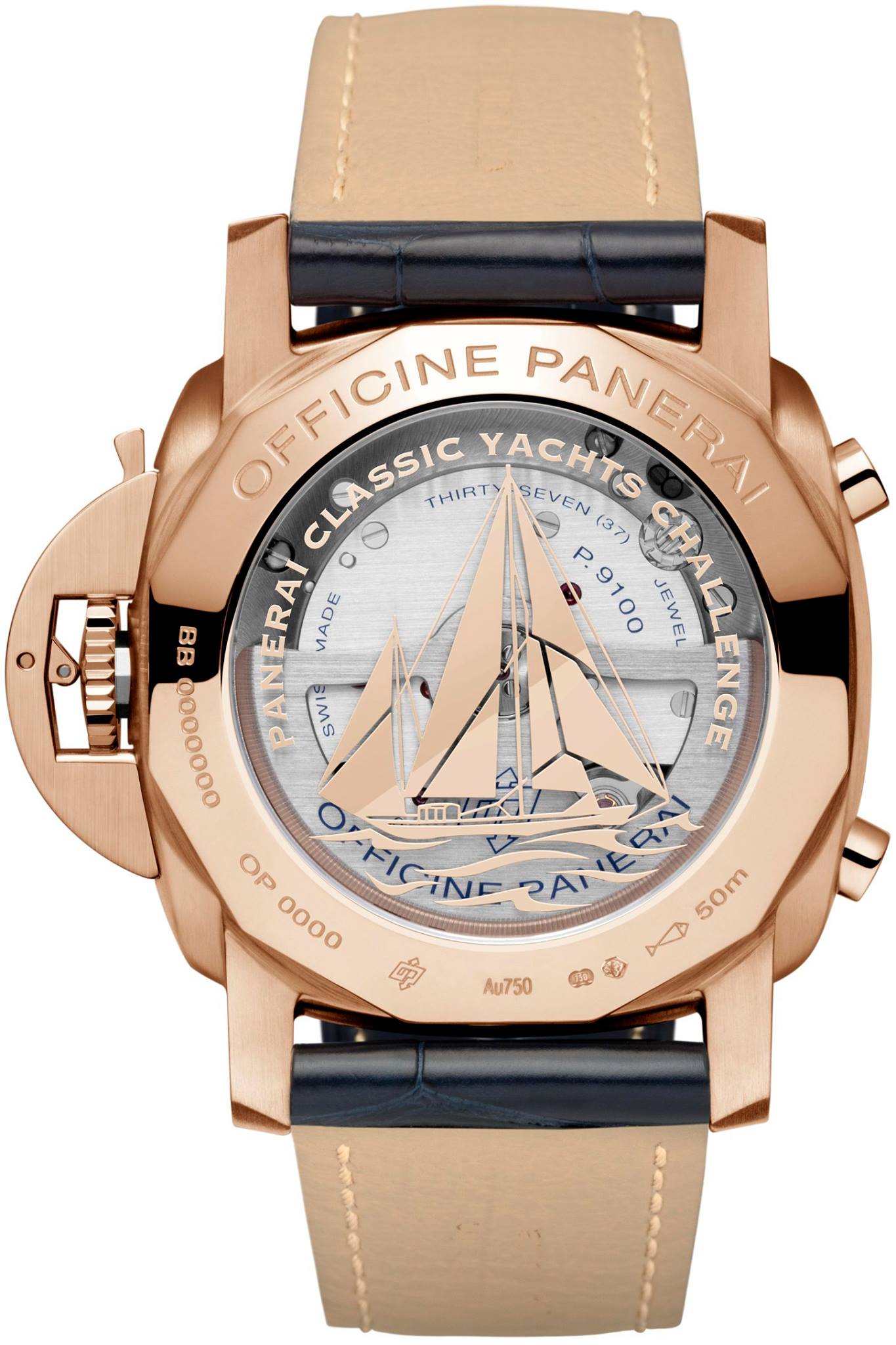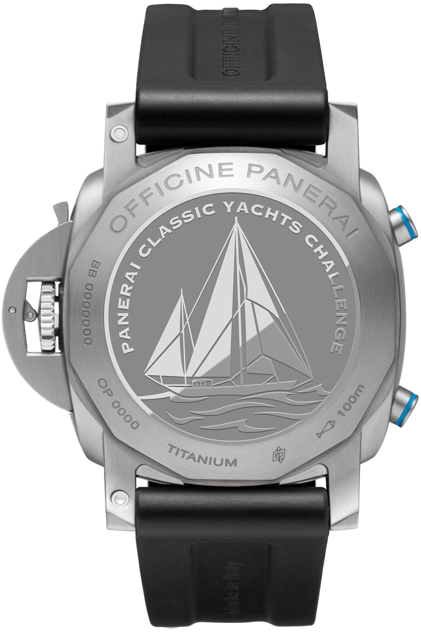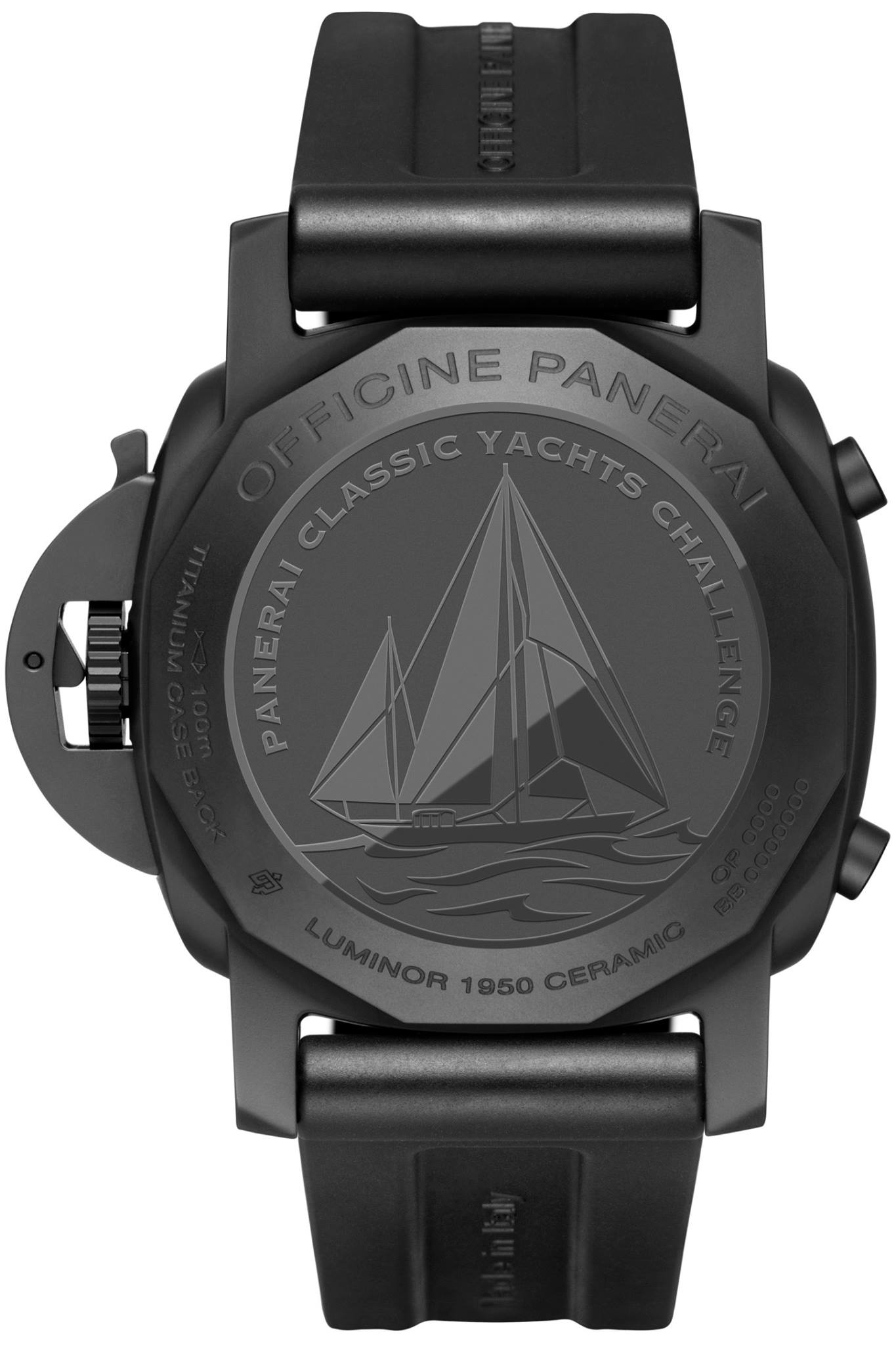 Cada una de las piezas muestra en la carátula la distinción PCYC (Panerai Classic Yachts Challenge), mientras que las versiones en cerámica y titanio lucen el grabado del Eilean en un fondo sólido. Por su parte, la ejecución de oro ostenta un fondo de cristal de zafiro que permite ver el movimiento y, a su vez, apreciar una inscripción a láser del emblemático velero de 1936.