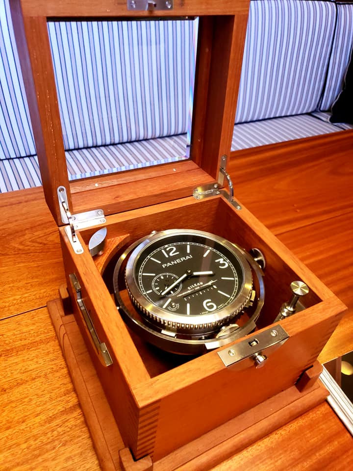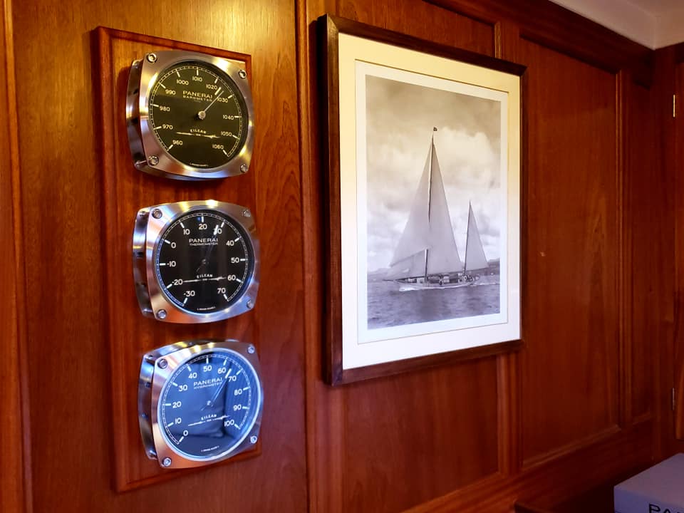 Para celebrar el regreso de Eilean al mar, Officine Panerai ha creado una edición única de instrumentos de navegación: barómetro, higrómetro, termómetro y reloj de pared, todos hechos de acero inoxidable y personalizados con el logotipo de Eilean. También ha creado una edición exclusiva del Cronómetro marino, el cual tiene un sistema de suspensión que permite que el reloj permanezca en una posición horizontal en todo momento, independientemente de la inclinación y balanceo del barco.