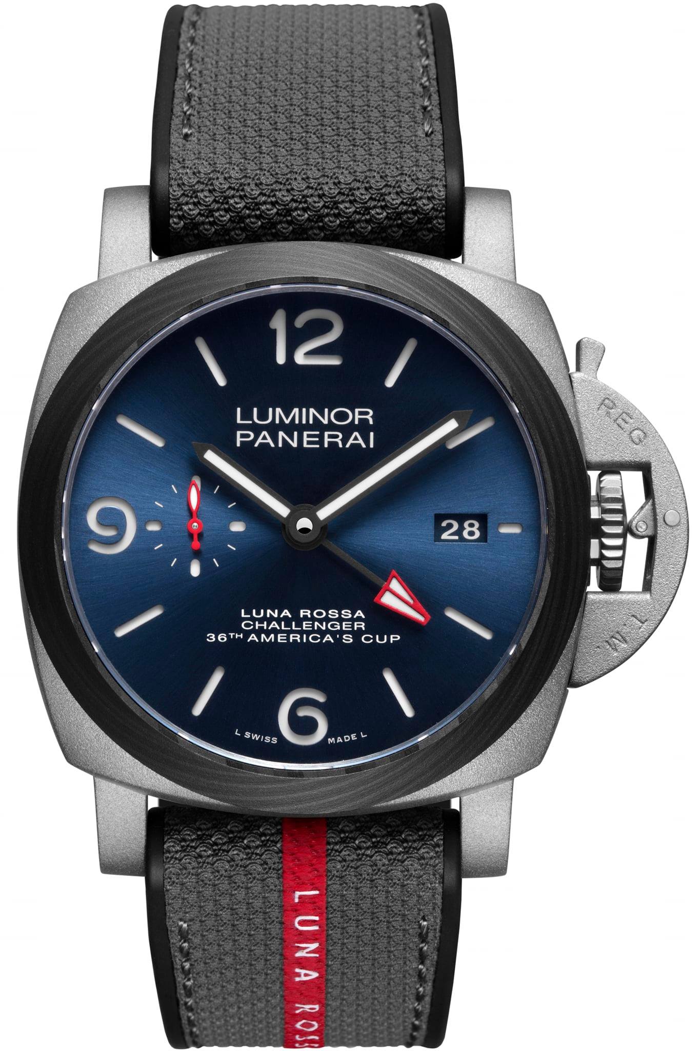 Exclusivo para e-Commerce y con fecha de lanzamiento oficial a partir del 3 de diciembre, este ejemplar se presenta en Edición Limitada a 20 ejemplares. Se trata del fantástico Luminor con calibre GMT, ideal para mostrar dos tiempos horarios al mismo momento, pero que recibe un twist de diseño con una carátula azul en degradado, caja de titanio arenado y bisel en Carbotech.