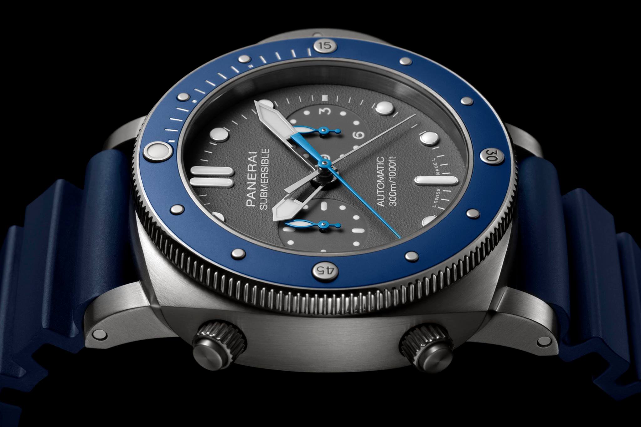 En cuanto a estética, el color azul se hace presente en todo momento, mientras que la carátula destaca en tono gris con textura e índices aplicados dotados de tratamiento luminiscente, haciendo juego con las agujas. Los pulsadores enroscados garantizarán la correcta manipulación de los mismos, mientras que los totalizadores de horas y minutos se ubicarán en punto de las 3 y 9 horas respectivamente.