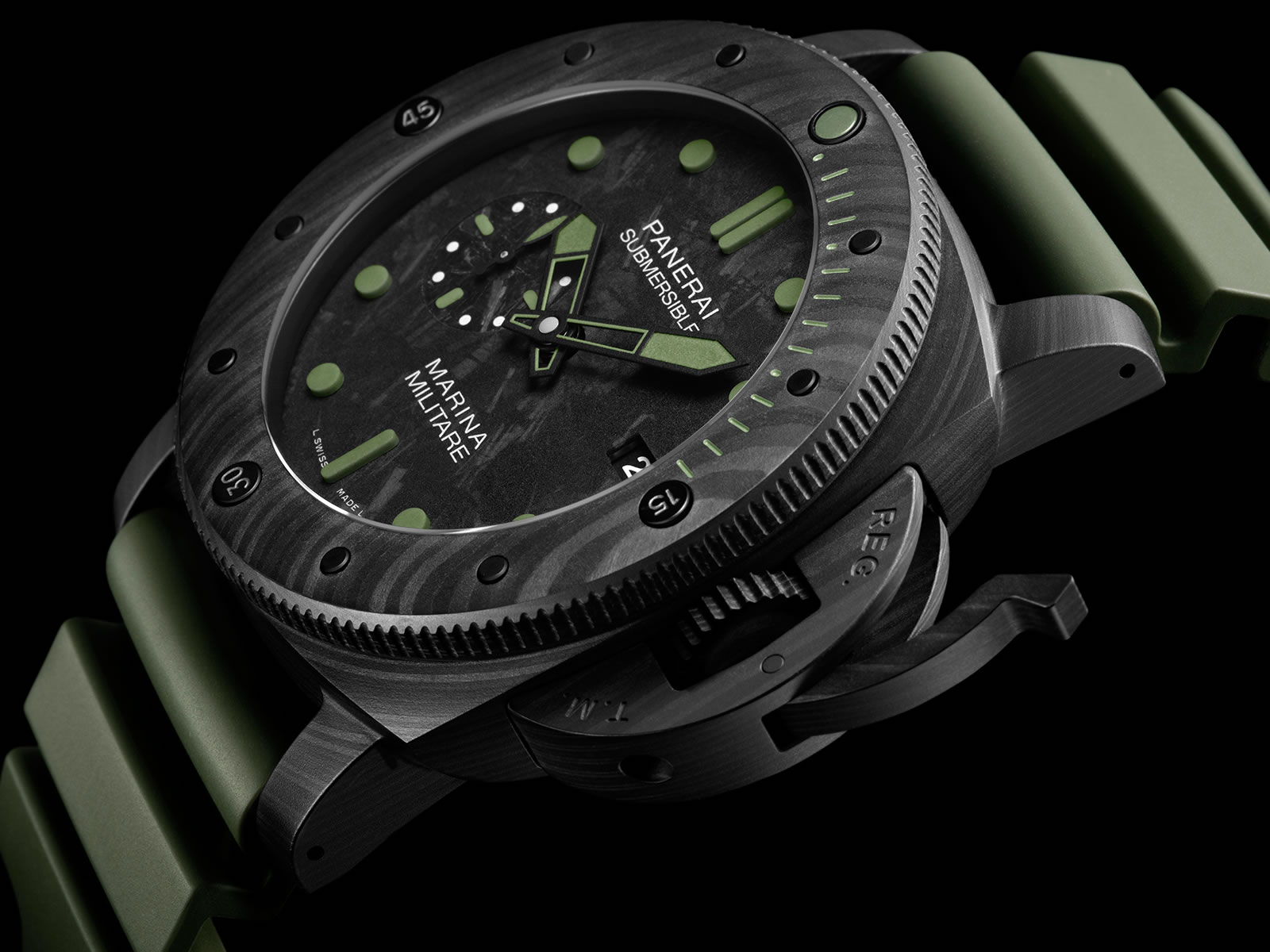 Ambos están dotados del calibre P.9010 de Panerai, mecánico automático a 4 Hz don dos barriletes para ofrecer 72 horas de autonomía a 4 Hz. Los dos ofrecen una correa de caucho a juego y presentan índices aplicados, tratamiento luminiscente excepcional y carátula color negro con patrón de camuflaje. El fondo de la pieza es sólido, de aluminio, mientras que la referencia es hermética a los 300 metros de profundidad.