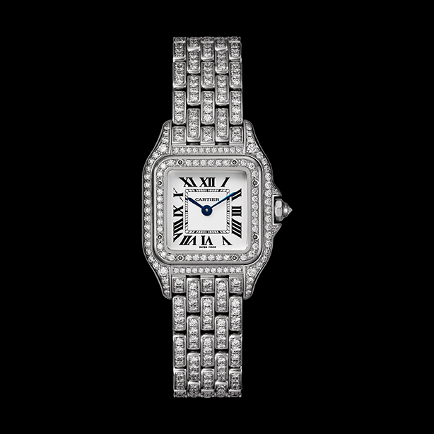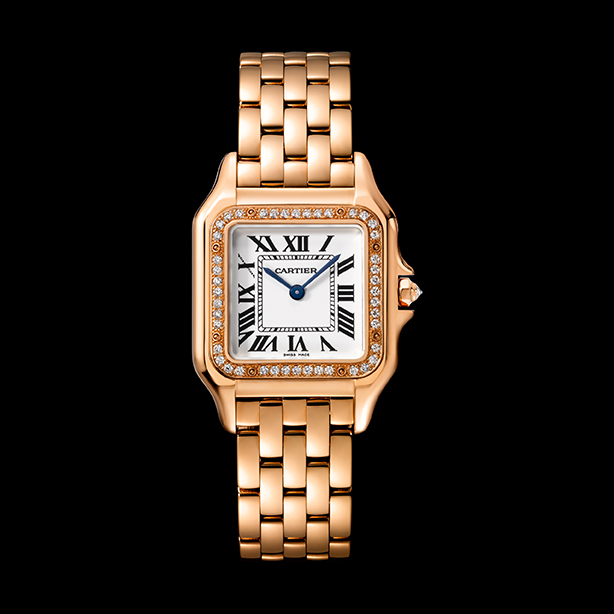Disponible en talla mediana y pequeña (22 Y 27 mm de diámetro), en oro amarillo, rosa y acero inoxidable, Panthère de Cartier sí es una pieza de joyería hecha reloj, o reloj concebida como brazalete inseparable de la figura femenina.