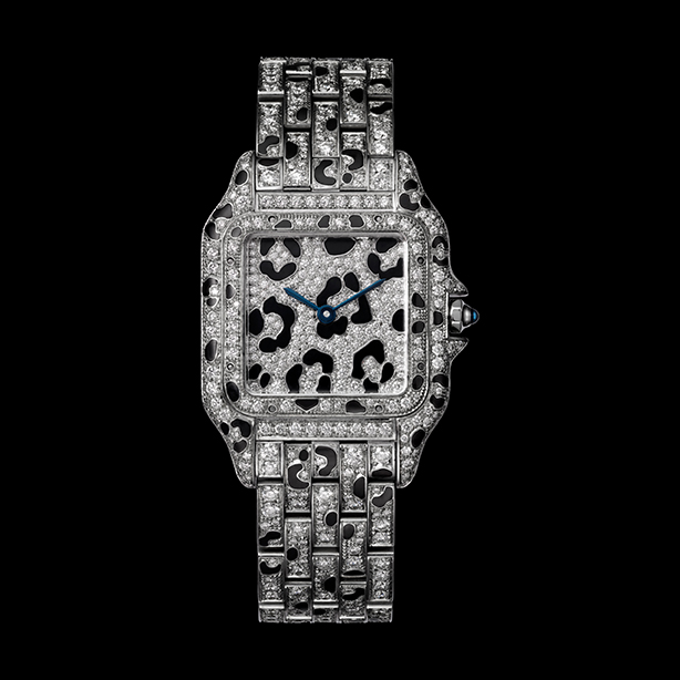Piezas que lucen una combinación oro y acero, geometría utilizada en numerosas ocasiones por Cartier, también están propuestas, además de un reloj de oro rosa con laca negra que invita a pensar en la piel del emblemático felino. Finalmente, dos configuraciones en oro blanco y diamantes robarán el aliento, una goza de un engaste perfecto con “manchas salvajes” color negro, mientras que el otro luce brillante, pero deja la carátula limpia a fin de mejorar la lectura. Todas están animadas por calibres de cuarzo, para una precisión suiza extraordinaria.