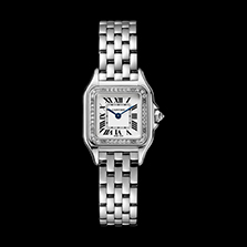 La pantera apareció en Cartier a principios del siglo pasado, y a partir de ese momento nunca más se separó de la marca. Panthère se presenta en 1983 y se erige como el icono femenino de la Maison, buscando representar la belleza femenina y sentar las bases del reloj suizo para una dama elegante en busca de audacia atemporal.