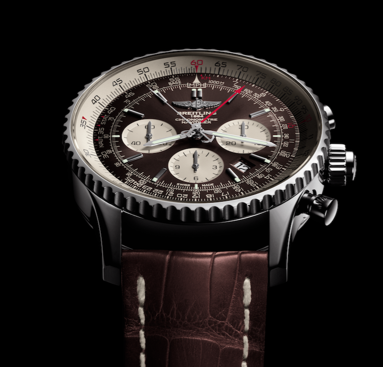 El bisel es bidireccional con regla de cálculo es pionero en modelos como el Breitling Navitimer o el famoso Chronomat, está diseñado para la especificación de la navegación aérea. Por ello cuenta con escalas logarítmicas empleadas por los pilotos: STAT (kilometraje estándar); KM (kilómetros), NAUT (millas náuticas). Con ellas se puede conocer y calcular el consumo de combustible, velocidad del aire, tiempo y distancia, además de convertir millas a kilómetros o viceversa. Hoy todo lo ejecutamos por medio de una computadora, pero poder contar con una escala como éstas en nuestro reloj, es un plus.