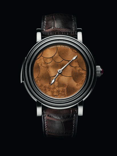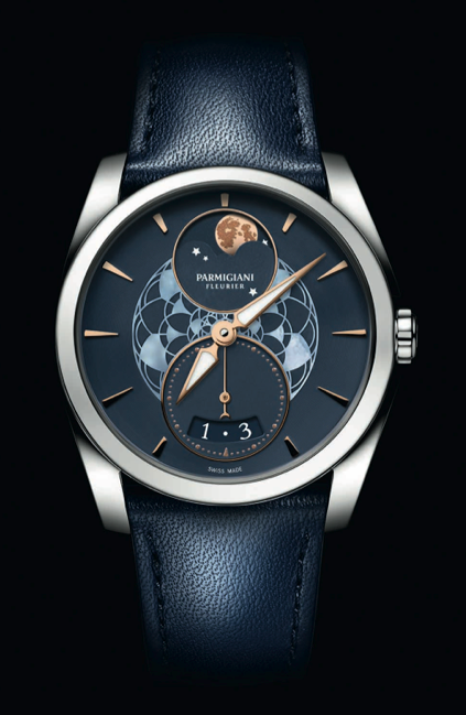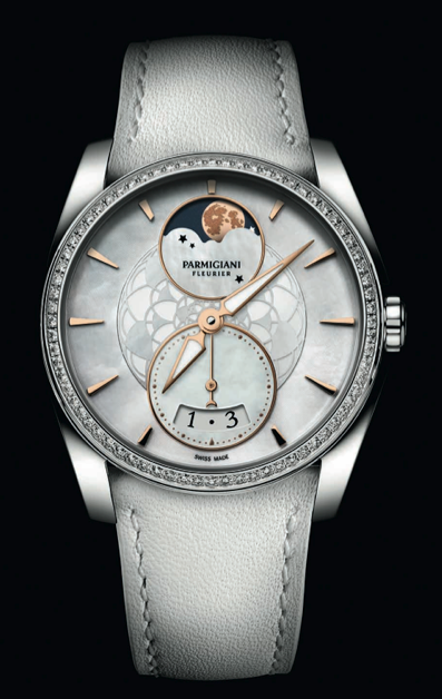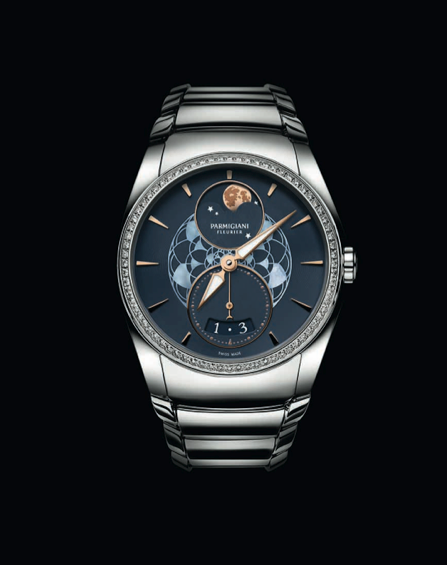 Responde a una ejecución clásica de la fase lunar. Aunque puede resultar clásica a priori, al observarla más de cerca aparecen una serie de elementos de gran sutileza que confieren a la pieza toques de distinción que constituyen la base de su originalidad. el auténtico punto fuerte y la originalidad de la pieza reside en el motivo floral que adorna el dial y que sublima la feminidad intrínseca de esta complicación. La flor de loto, representada en el centro de la pieza, es una planta que se abre de noche, a la hora en la que aparece la Luna. En determinadas culturas, se dice que esta flor es el símbolo del caminar femenino, ya que de cada paso de la mujer nace una flor de loto.