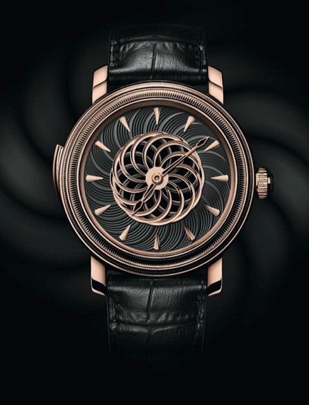 Su torbellino rota al interior de la jaula a medida de 30 segundos, dos veces más veloz que un tourbillon tradicional. Al dar dos vueltas por minuto en vez de una solo, este tourbillon dobla el alcance compensatorio de la fuerza de gravedad inherente al tourbillon. Este movimiento de cuerda manual cuenta con un barrilete doble montado de serie que le permite acumular una reserva de marcha de una semana, un logro poco frecuente para una complicación de este calibre.
