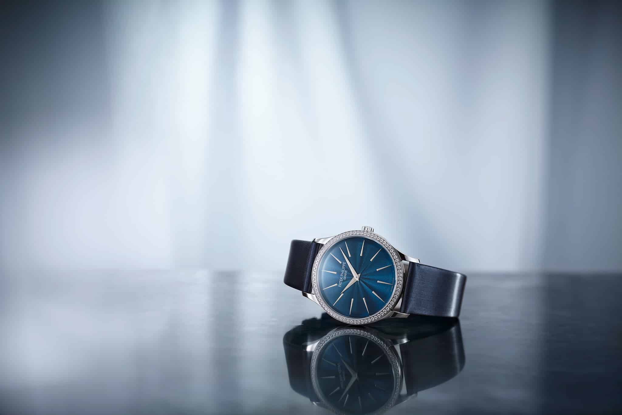 Lanzado en 2009, el Calatrava Dames referencia 4897, con carátula guilloché lacada y calibre 215 de cuerda manual, ha sido propuesto en diversos colores (marrón, azul noche, crema, gris plateado), dotado de bisel engastado con diamantes redondos o diamantes baguette. A este modelo emblemático le sucede ahora una nueva interpretación provista de un movimiento de cuerda automática alojado dentro de una caja de oro blanco de un tamaño ligeramente mayor (35 mm en lugar de 33 mm). Lo que no dejará de seducir a una clientela femenina cada vez más ávida de conjugar refinamiento estético, sofisticación y confort gracias a un movimiento mecánico que se da cuerda con los movimientos de la muñeca.