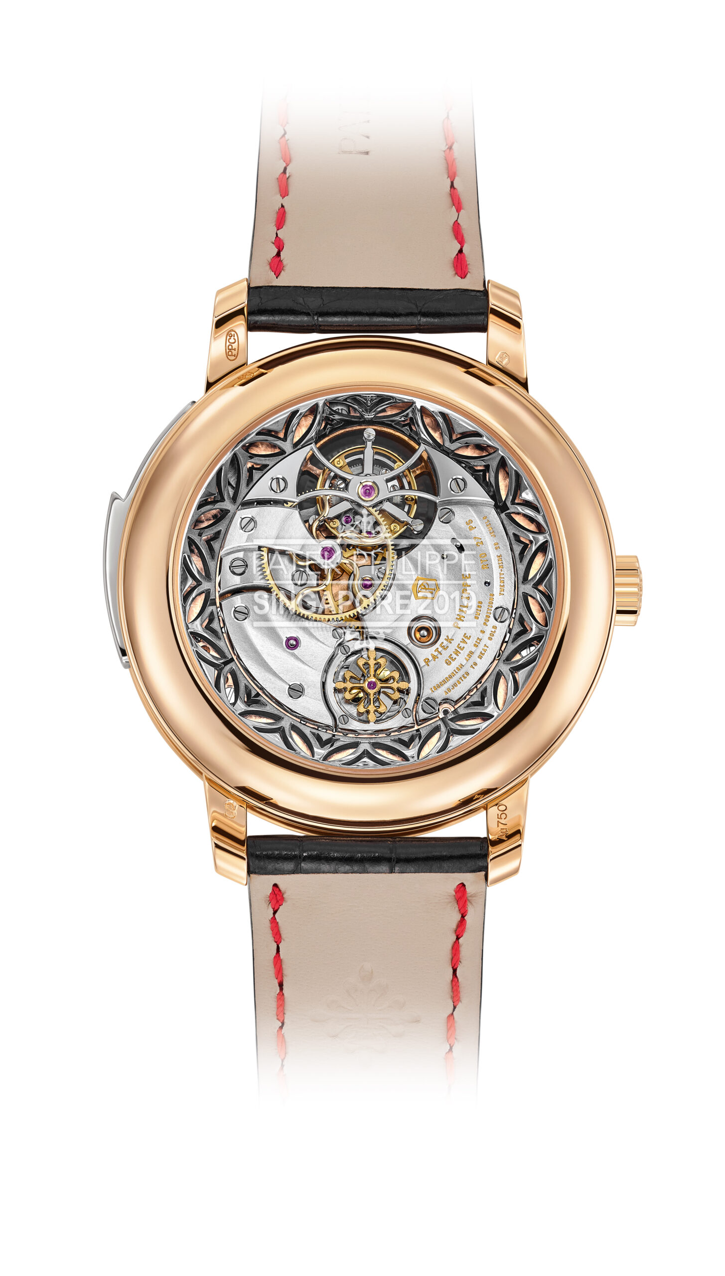 Esta referencia es la más destacada de los lanzamientos especiales, y la más revolucionaria de Patek Philippe en los últimos años. Se trata de la primera ocasión en la que la marca exhibe los gongs y martillos en la parte frontal de la carátula. Además de ser pionera en la exhibición del tourbillon.