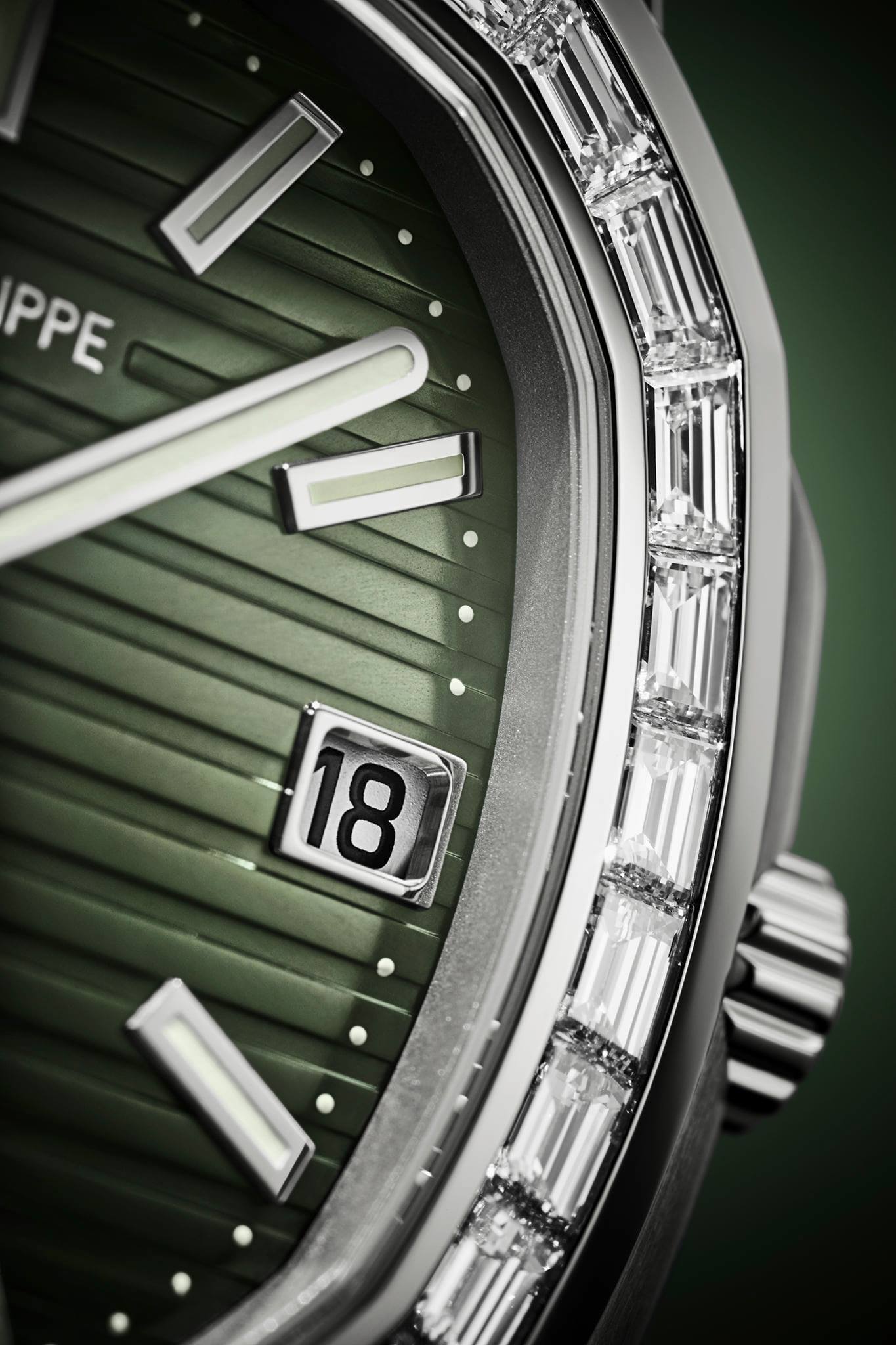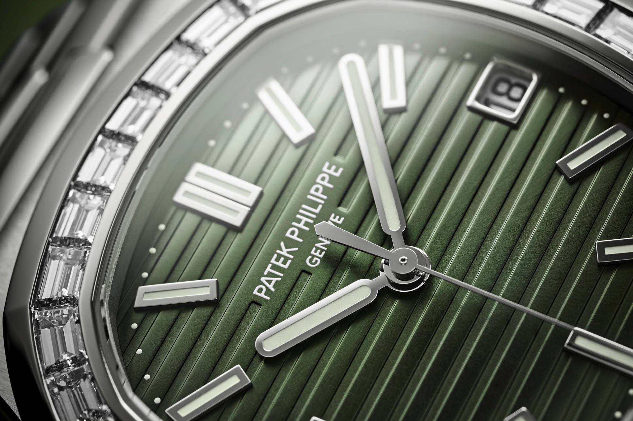 El destello de los diamantes hace resaltar igualmente esta nueva carátula verde olivo, introducida este año en la referencia 5711/1A-014. Realzada con un relieve horizontal grabado, identidad de la colección Nautilus, esta carátula inédita va dotada de un acabado soleil. Los índices aplicados y las agujas tipo bastón redondeado de oro blanco con revestimiento luminiscente garantizan una excelente legibilidad a cualquier hora del día y de la noche.