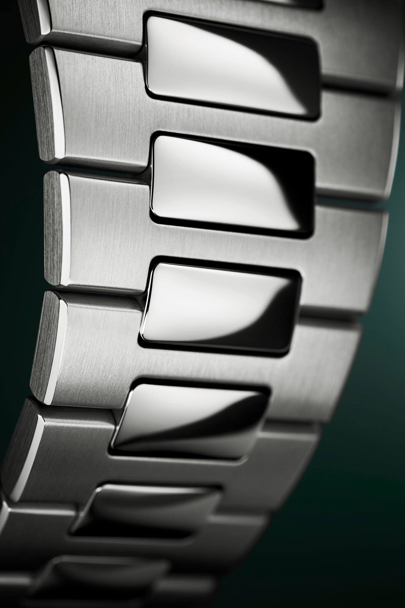 La caja y el brazalete integrado se adaptan perfectamente a la muñeca, ofreciendo un excelente confort de uso. Como en todos los modelos Nautilus, sus volúmenes van realzados con la alternancia de acabados manuales satinados y pulidos. Con una estanqueidad de hasta 120 m, la referencia 5711/1300A-001 alberga el mismo calibre 26-330 S C de cuerda automática que la referencia 5711/1A-014 –un movimiento visible a través de un fondo de zafiro transparente.