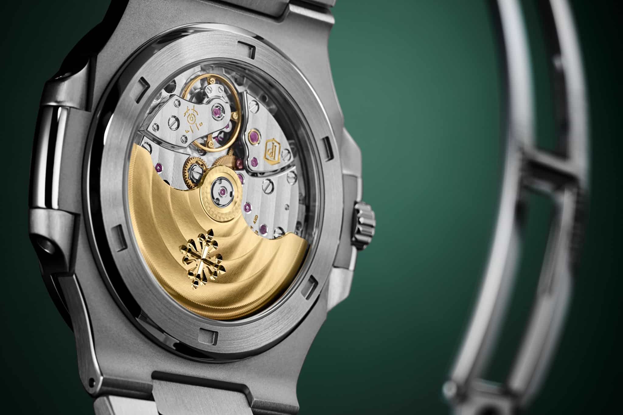 El brazalete de acero inoxidable cepillado y pulido con cierre desplegable permanece sin modificaciones, mientras que el movimiento es el calibre 26-330 S C, un motor automático que se encuentra en el 5711 desde 2019, una evolución del 324 con varias actualizaciones técnicas, como la parada de segundos para un ajuste perfecto. El movimiento está equipado con un rotor de oro de 21k, está estampado con el sello Patek Philippe, funciona a 4 Hz y almacena de 35 a 45 horas de reserva de marcha.