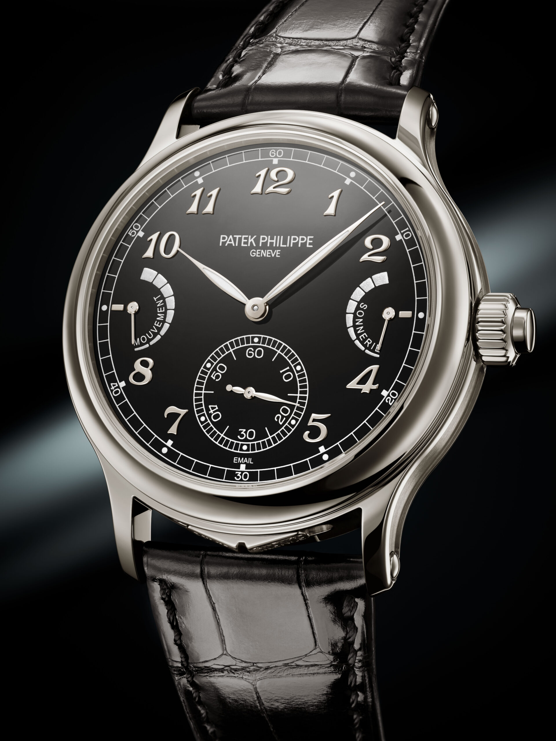 Al ojo luce espectacular, pero al oído le han dedicado lo mejor de lo mejor y los más altos desarrollos de la Casa para que sus tres martillos y dos gongs hagan la magia de escucharlos, una exigencia mayor y compromiso de Patek Philippe por alcanzar la excelencia en la generación y proyección del sonido. Simplemente excepcional, una pieza con Grande Sonnerie, Petit Sonnerie, repetidor a minutos y segundero saltante. Llevar al pulso una pieza así no es sino obra de la maestría alcanzada en este arte de la mecánica relojera y excelencia en la sonería por parte de la casa.
