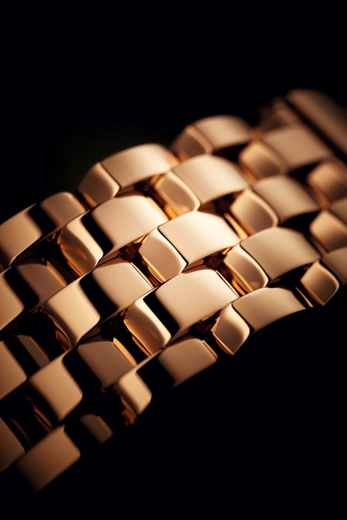 Este brazalete está compuesto por cinco hileras de eslabones y dotado de un cierre desplegable que se caracteriza por su gran flexibilidad sobre la muñeca, tanto como por su elegancia, enaltecida por un largo trabajo de pulido manual. Un detalle refinado: los correctores del calendario perpetuo están integrados en el eslabón de la atadura del brazalete para hacerlos lo más discretos posible, un verdadero hito para la relojería y demostración plena del savoir-faire de la Casa ginebrina.