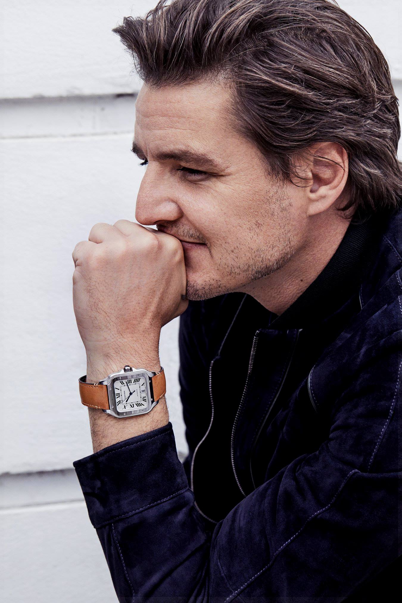 Pedro Pascal es el hombre Santos de Cartier, Latinoamérica. La nueva colección Santos de Cartier presenta un rediseño estético.