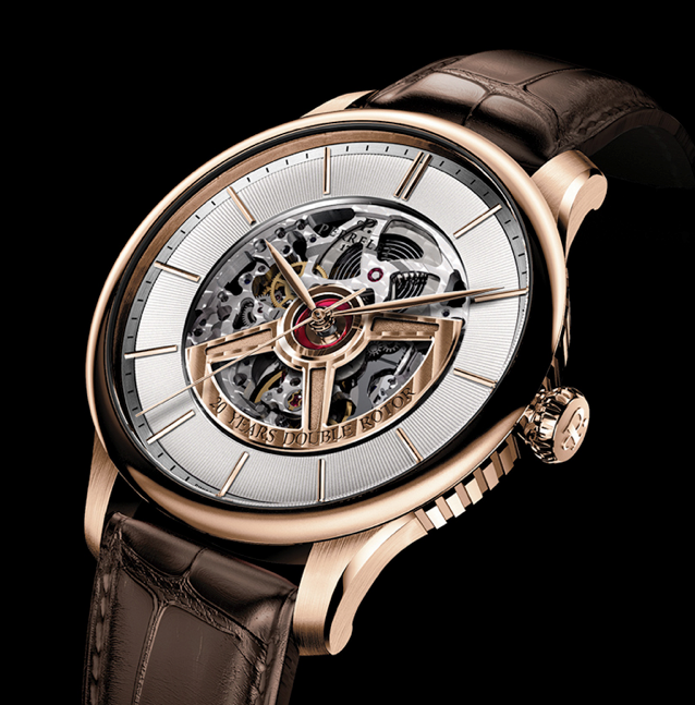 Destacamos la presencia del First Class con caja de 42 mm y precio de entrada ligeramente superior a los tres mil dólares, mientras que en su versión doble Rotor encontraremos ediciones limitadas con la masa oscilante al frente, calibre esqueletado y diferentes materiales como: correas de piel de cocodrilo marrón y negro, y una versión de aniversario limitada a 77 piezas de oro rosa de 18 quilates.