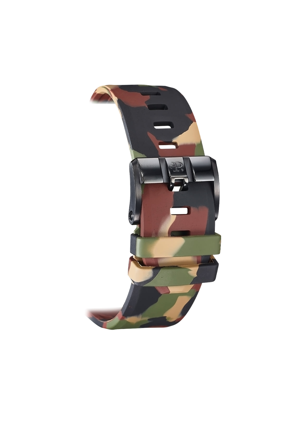 - Correa. caucho con patrón camuflaje, hebilla de acero inoxidable decorada con el logo de Perrelet