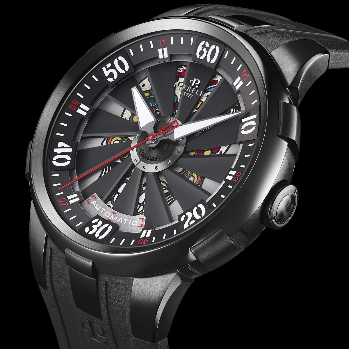 Para complementar este gran diseño, están disponibles con una correa de caucho negro con una hebilla con PVD negro y decorada con el logo de Perrelet.
