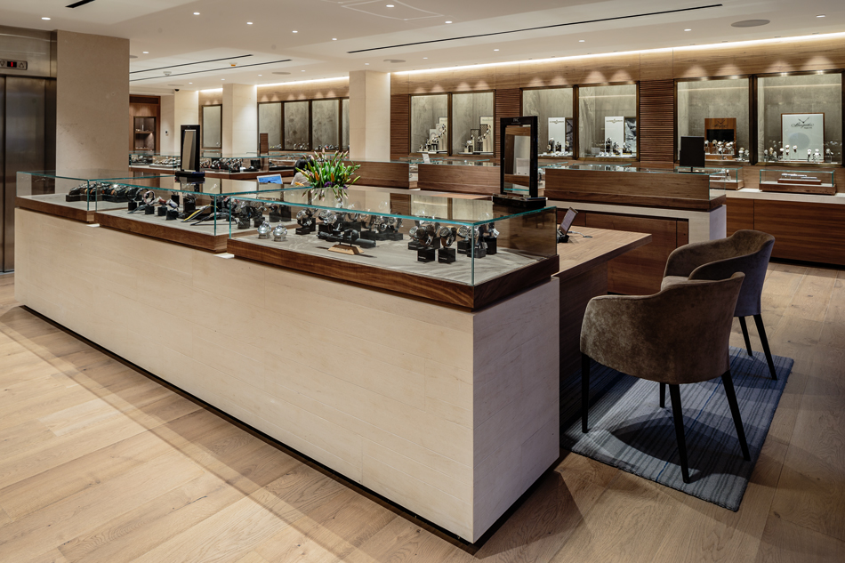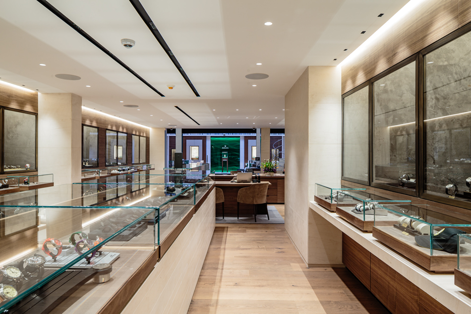 Fueron necesarios cuatro meses de trabajo y una cantidad significativa de alcántara, mármol italiano y sillones personalizados, mientras que cada marca exhibe una personalidad propia, destacando los sitios entregados a Rolex, Patek Philippe, Cartier y Audemars Piguet, Casas de enorme prestigio y que gozan de la preferencia del público mexicano.