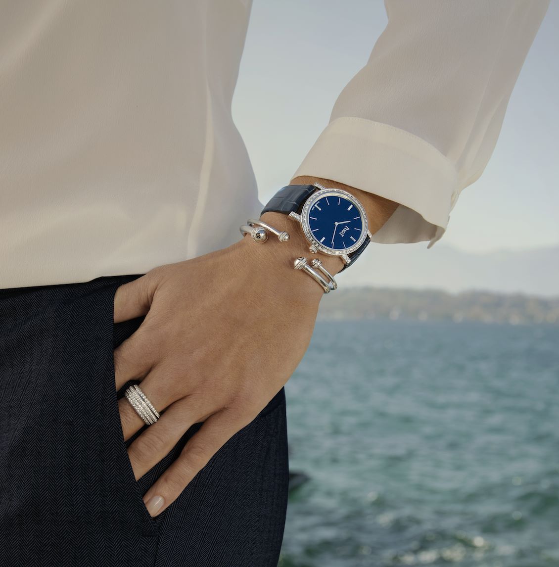 En una caja de 36 mm de oro blanco de 18 quilates, el Altiplano Baguette late a una frecuencia de 3 hz desarrollada por un calibre ultra fino de cuerda manual 430P. Con reserva de marcha de aproximadamente 43 horas, este modelo tiene como función marcar las horas y minutos de una manera elegante y clásica. A través de una correa de piel de cocodrilo color azul con hebilla de oro blanco, este modelo de Edición Limitada 88 piezas será el indicado para leer la hora.