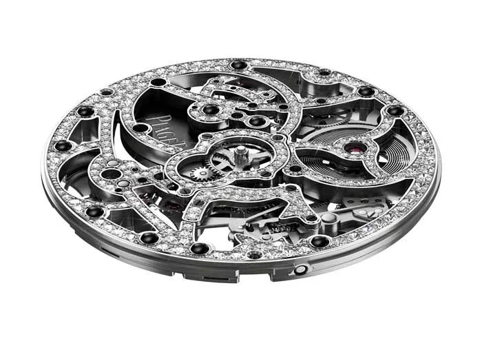 Maestro pasado del arte ancestral del esqueletado, con los calibres 600S y 1200S, Piaget ha concebido los movimientos esqueleto más planos del mundo. Pero el virtuosismo va más allá, puesto que la Manufactura ha superado un nuevo límite en 2005 al engastar por primera vez, no solo las piezas decorativas y otras placas adicionales de un movimiento esqueleto, sino la platina en oro en su totalidad y las piezas funcionales. Encarnación de este savoir-faire único en el mundo, al calibre 600D, presentado 2005, le sucede el calibre 838D en 2010, anticipo de otra joya del arte relojero desvelada hoy en el SIHH 2013: el calibre 1200D, primer movimiento automático esqueleto engastado.