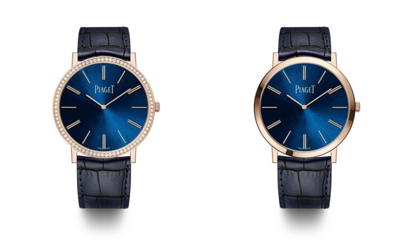 Piaget Altiplano se presenta en un par de Limited Editions vestidas de azul. El icónico modelo de 38 mm de diámetro y calibre ultraplano ahora luce caja de oro rosa de 18 quilates y una hermosa carátula color azul profundo.