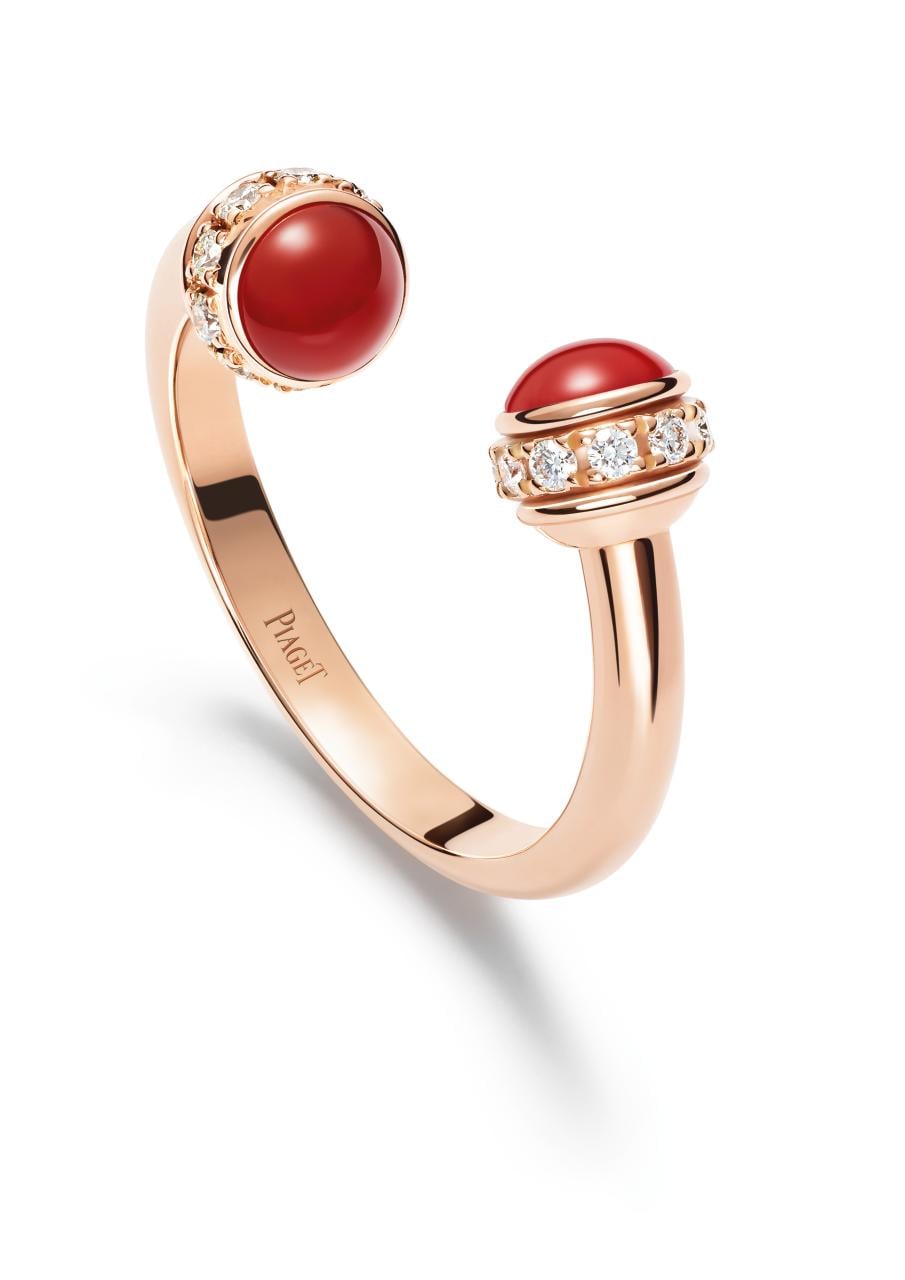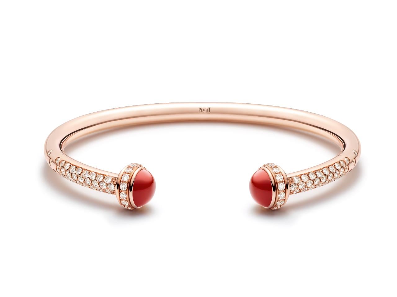 Junto con estos extraordinarios relojes, Piaget también ofrece una serie de nuevas creaciones de su colección Possession. Descubra un reloj de oro blanco de 18 quilates con una carátula de nácar y una caja engastada con diamantes con un anillo giratorio que gira alegremente. Un anillo Possession, dos collares y tres brazaletes de diferentes tamaños, todos en oro rosa, también se unen a las festividades. Todas con diamantes brillantes, cabujones de cornalina roja y los elementos giratorios característicos de Piaget, estas piezas Possession aportan una sensación de alegría y alegría al Año Nuevo Chino.